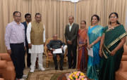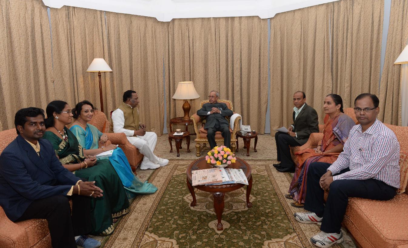 | Caption: | The President of India, Shri Pranab Mukherjee meeting with Mrs. C.H. Rekha Rao, Prof. St. Martins Engineering College, Training and Placement Department alongwith Educators, at Rashtrapati Nilayam, Bolarum, in Secunderabad on December 25, 2016. |