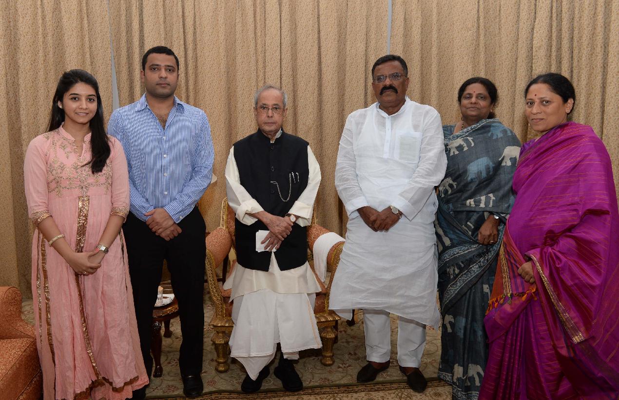 | Caption: | The President of India, Shri Pranab Mukherjee meeting with Shri Kotla Jaya Surya Prakash Reddy, former Union MoS for Railways alongwith family members, at Rashtrapati Nilayam, Bolarum, in Secunderabad on December 27, 2016. |