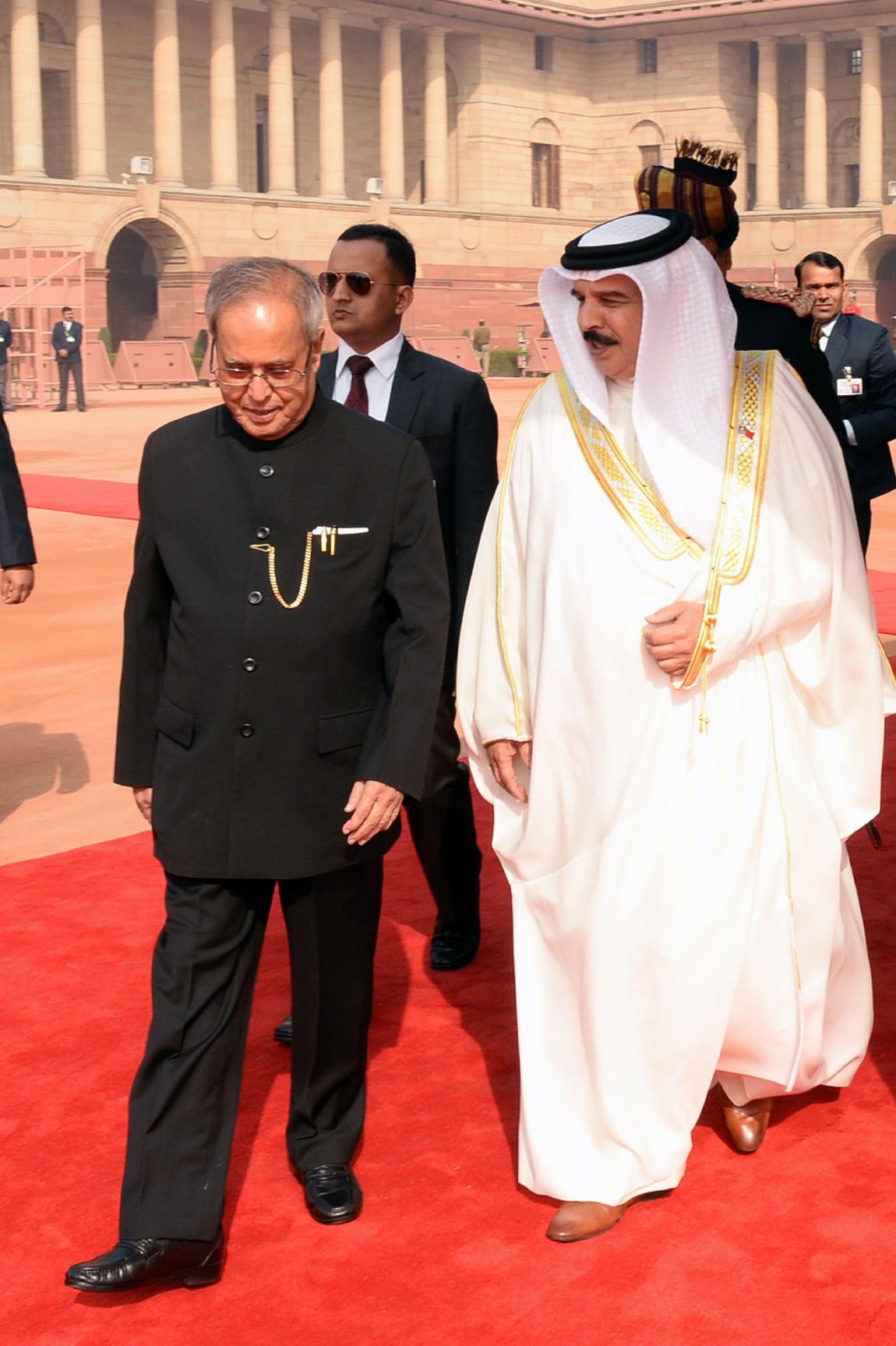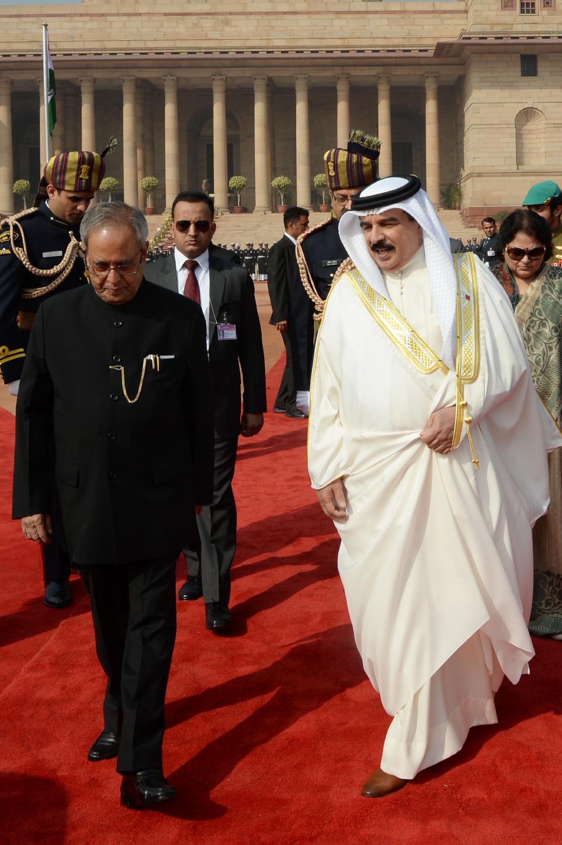 | Caption: | The President of India, Shri Pranab Mukherjee at the Ceremonial Reception of the King of Kingdom of Bahrain, His Majesty the King Hamad Bin Isa Al Khalifa at the Forecourt of Rashtrapati Bhavan in New Delhi on Feb 19, 2014 |