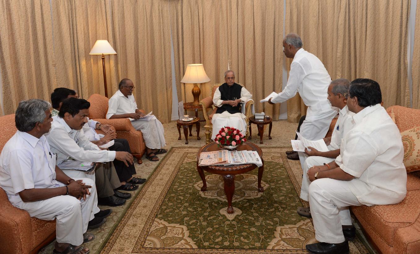 | Caption: | The President of India, Shri Pranab Mukherjee meeting with Shri Sunnam Rajaiah, MLA , CPIM alongwith CPIM members & Telangana Handloom Weavers, at Rashtrapati Nilayam, Bolarum, in Secunderabad on December 27, 2016. |