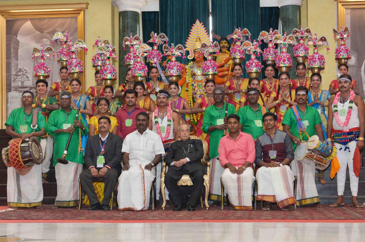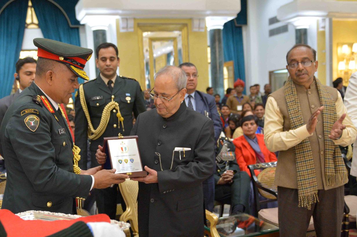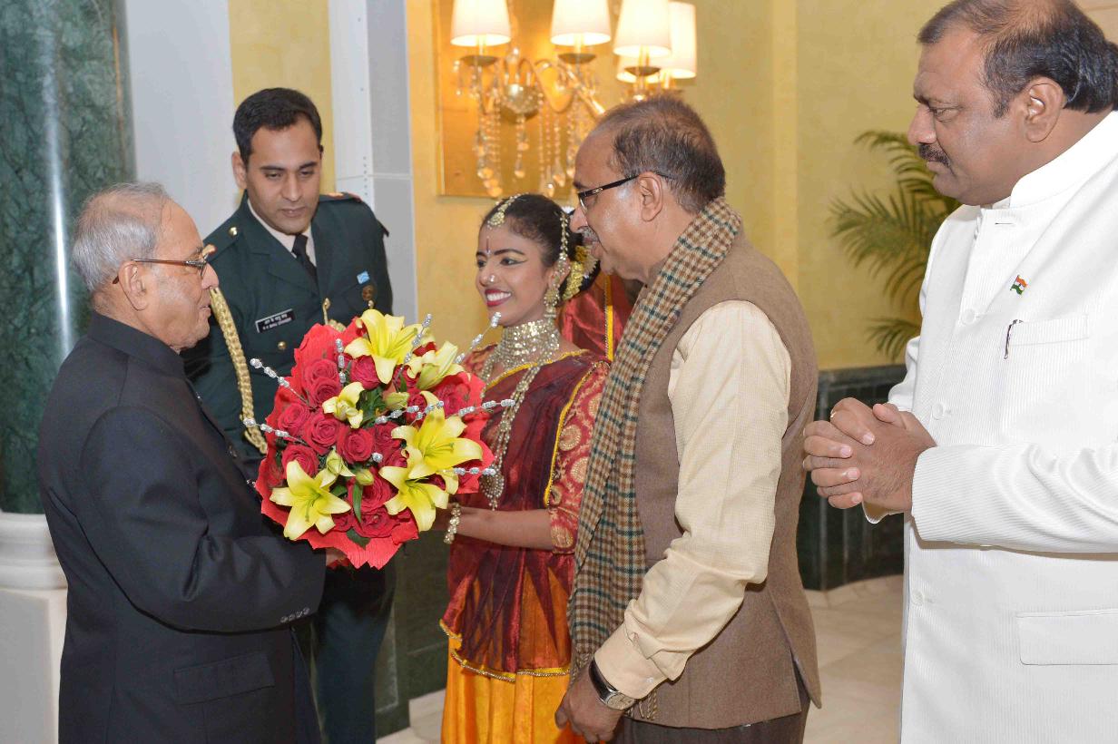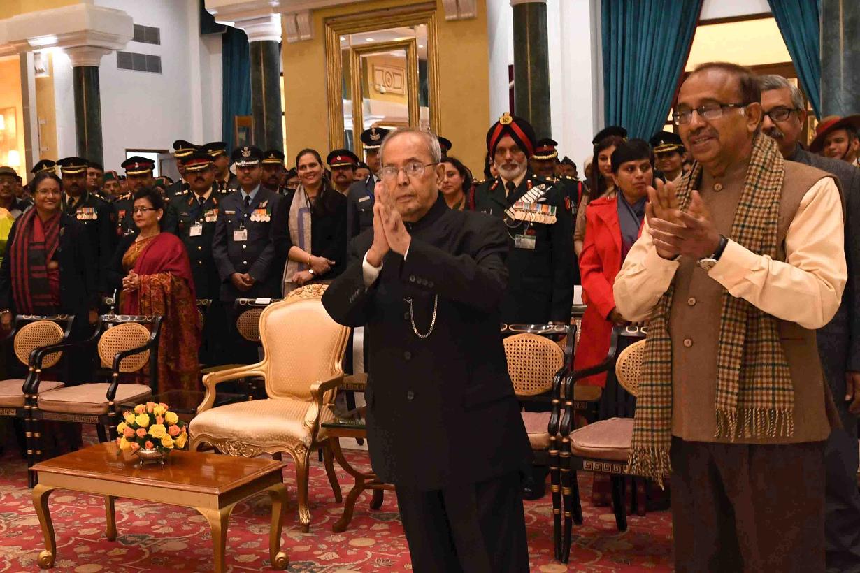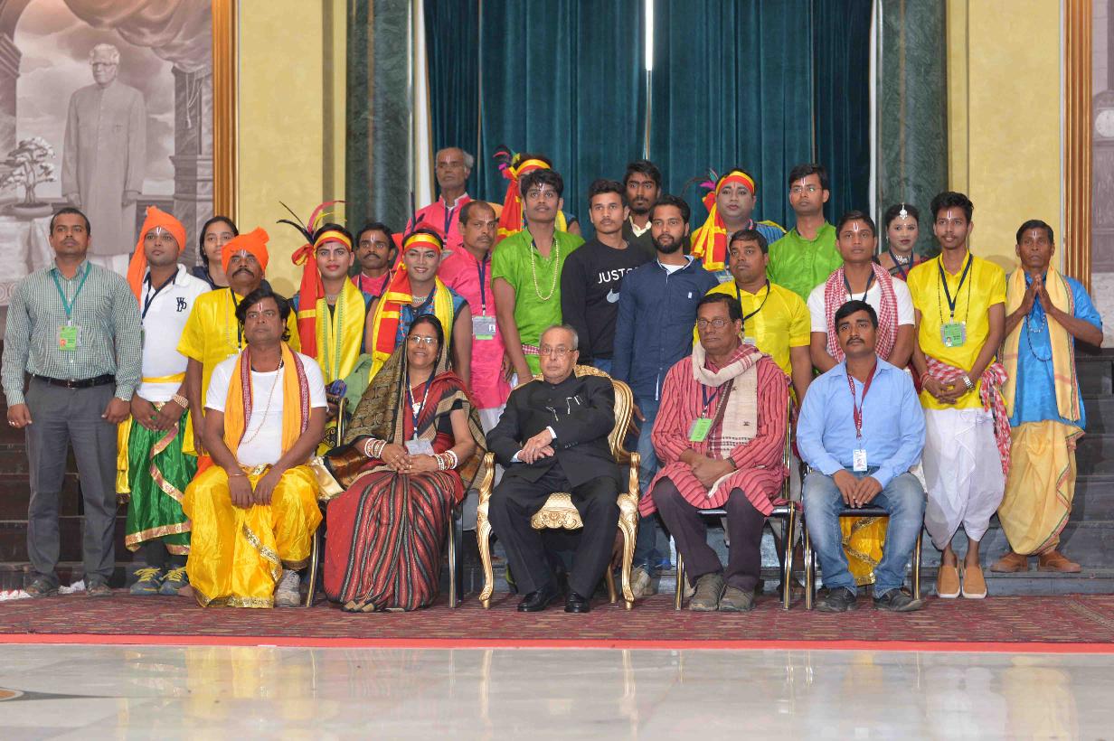| Caption: | The President of India, Shri Pranab Mukherjee meeting with the Tribal Guests, Tableaux Artistes, Tractor Drivers, NSS Volunteers & NCC Cadets (participants of the Republic Day Parade 2017), at Rashtrapati Bhavan Cultural Centre on January 27, 2017. |