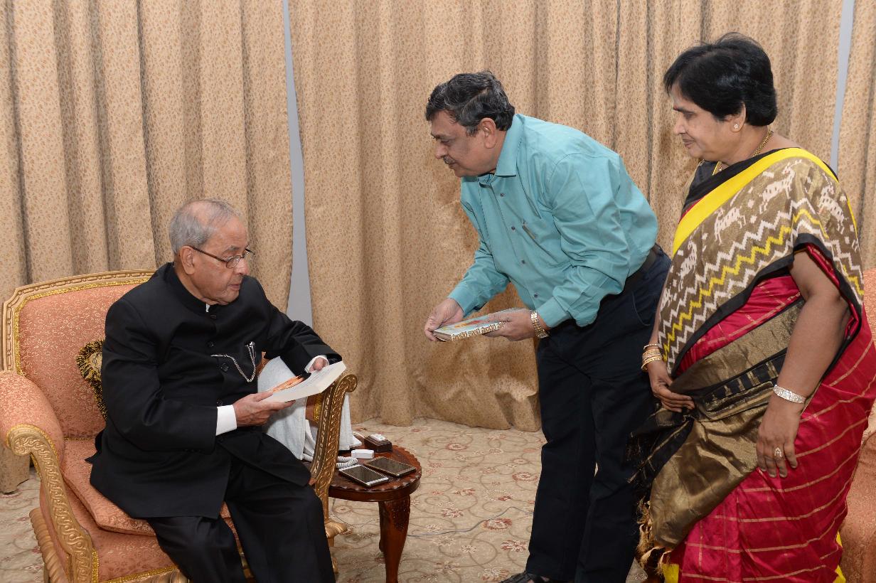 | Caption: | The President of India, Shri Pranab Mukherjee receiving a copy of the book ''Idee Suparipalana'' from Shri Jwala Narasimha Rao Vanam, Chief PRO to Chief Minister of Telangana alongwith Smt. Vijaya Laxmi, at Rashtrapati Nilayam, Bolarum, in Secunderabad on December 23, 2016. |