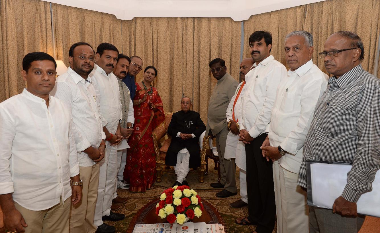 | Caption: | The President of India, Shri Pranab Mukherjee meeting with Shri Nandi Yellaiah, MP (LS) with others, at Rashtrapati Nilayam, Bolarum, in Secunderabad on December 30, 2016. |