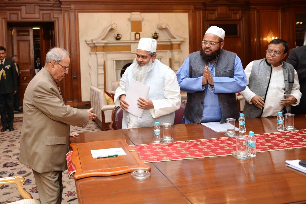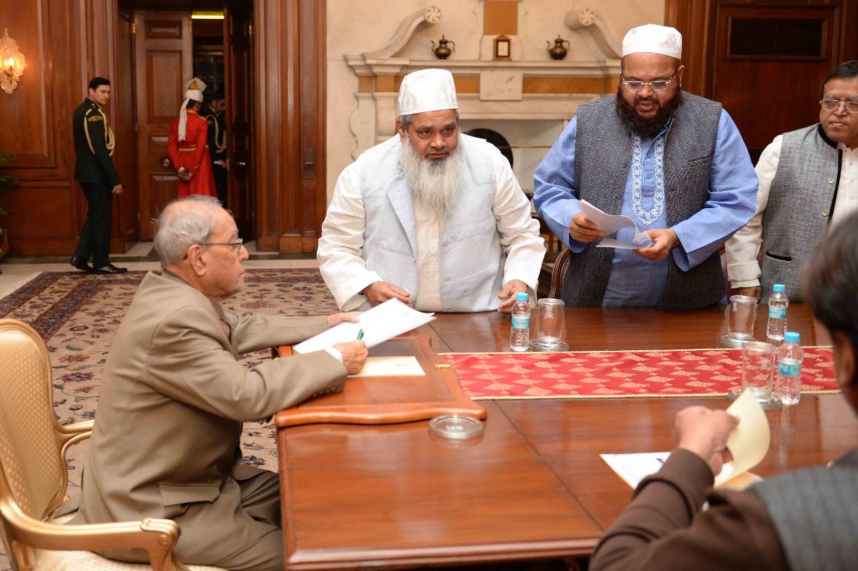 | Caption: | The President of India, Shri Pranab Mukherjee meeting with a delegation from All India United Democratic Front led by Shri M. Badruddin Ajmal, MP (LS) and President, AIUDF, at Rashtrapati Bhavan on February 07, 2017. |