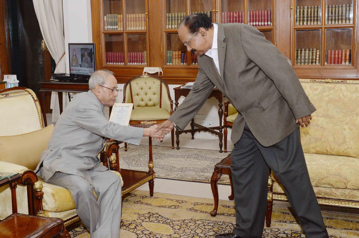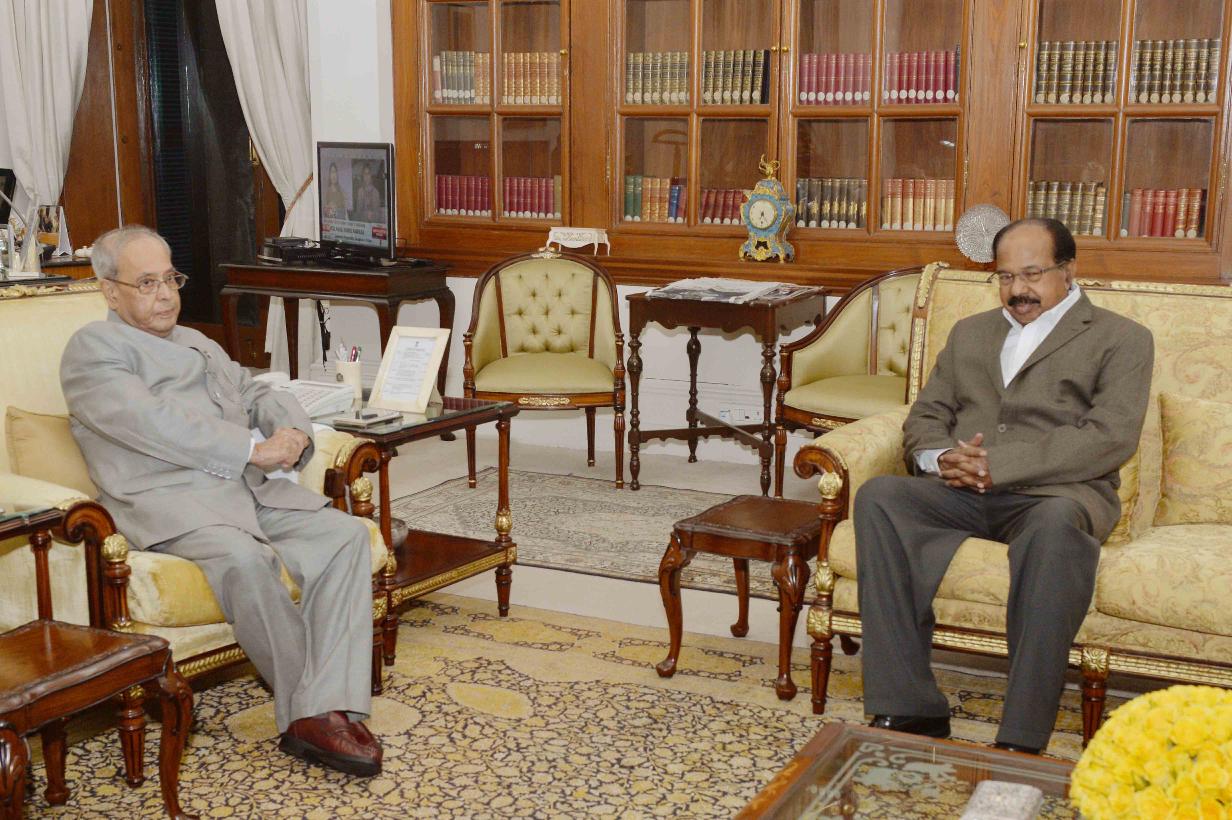| Caption: | The President of India, Shri Pranab Mukherjee meeting with Dr. M. Veerappa Moily, MP (LS) & former Union Minister, at Rashtrapati Bhavan on February 16, 2017. |