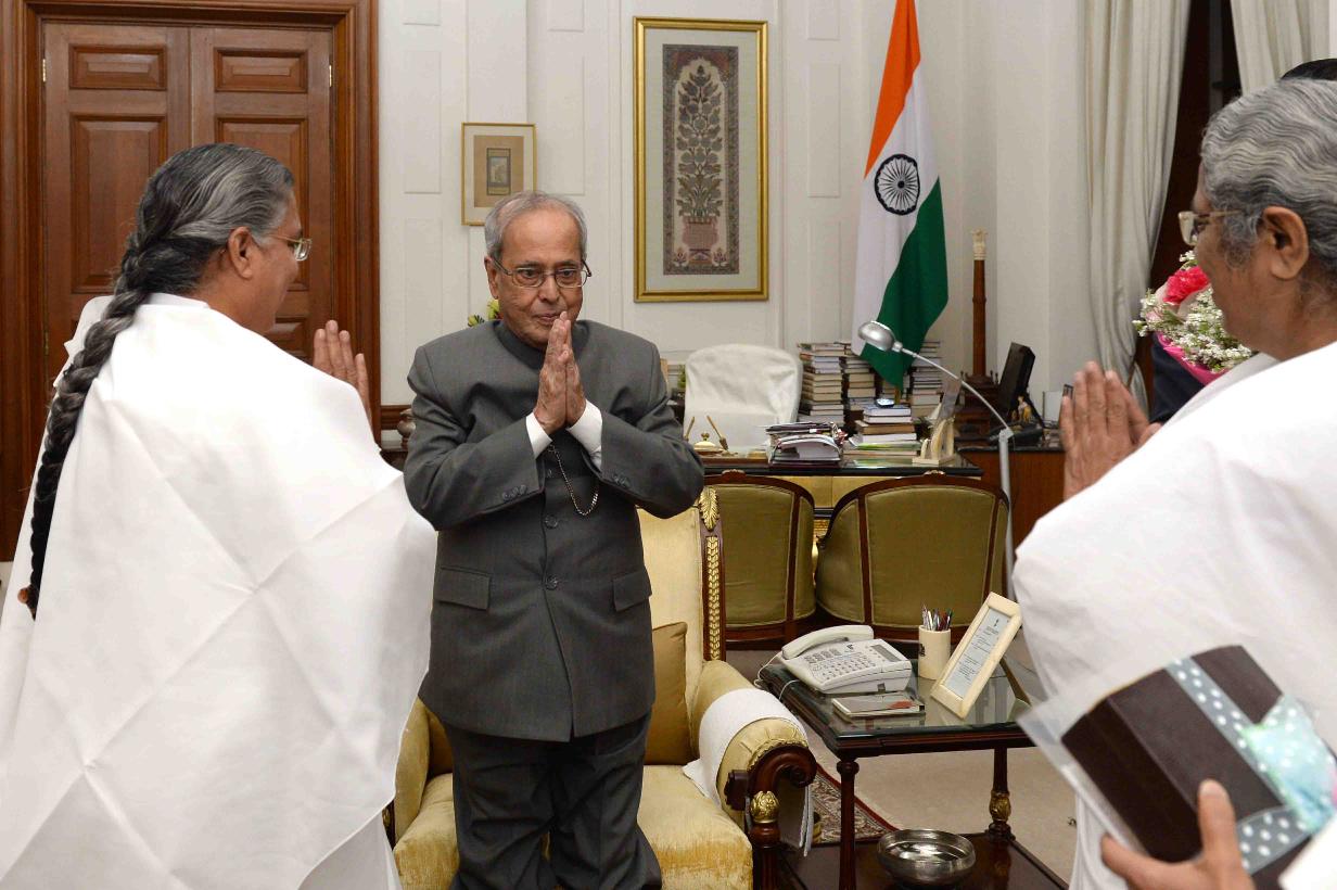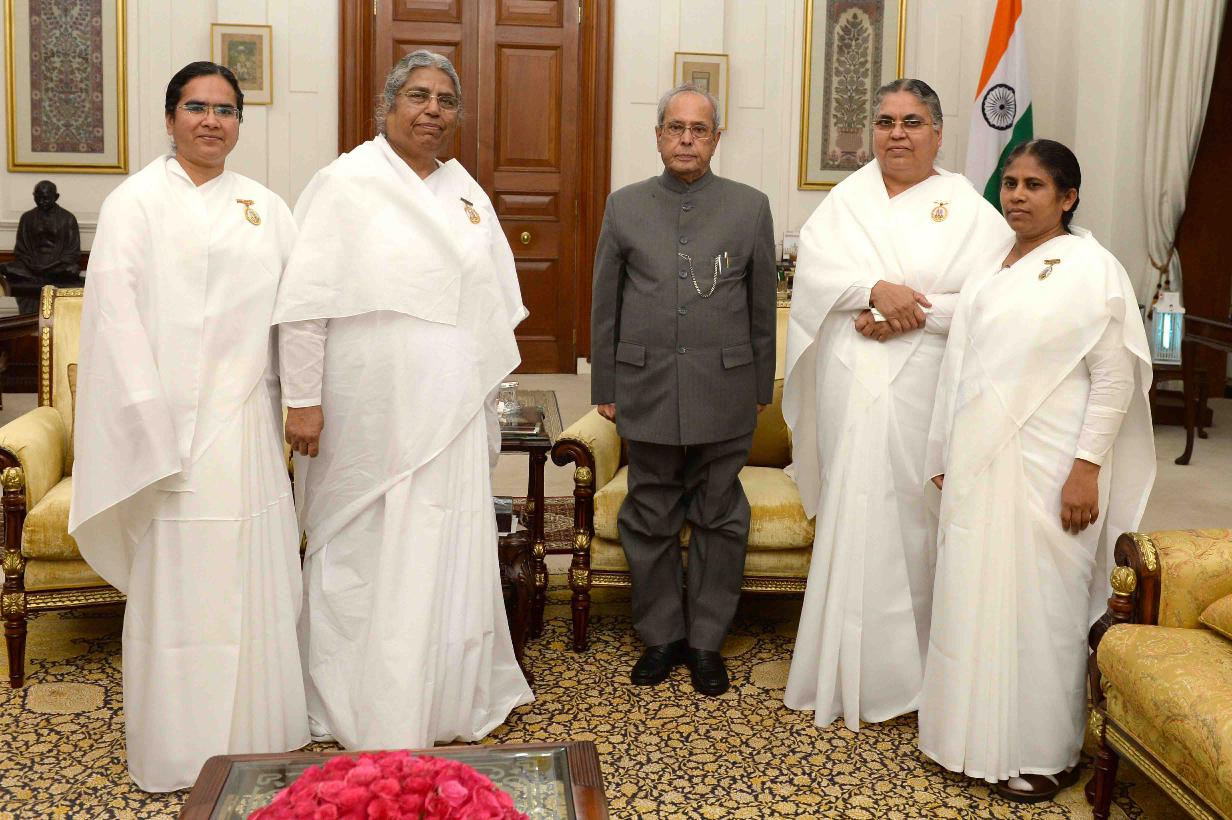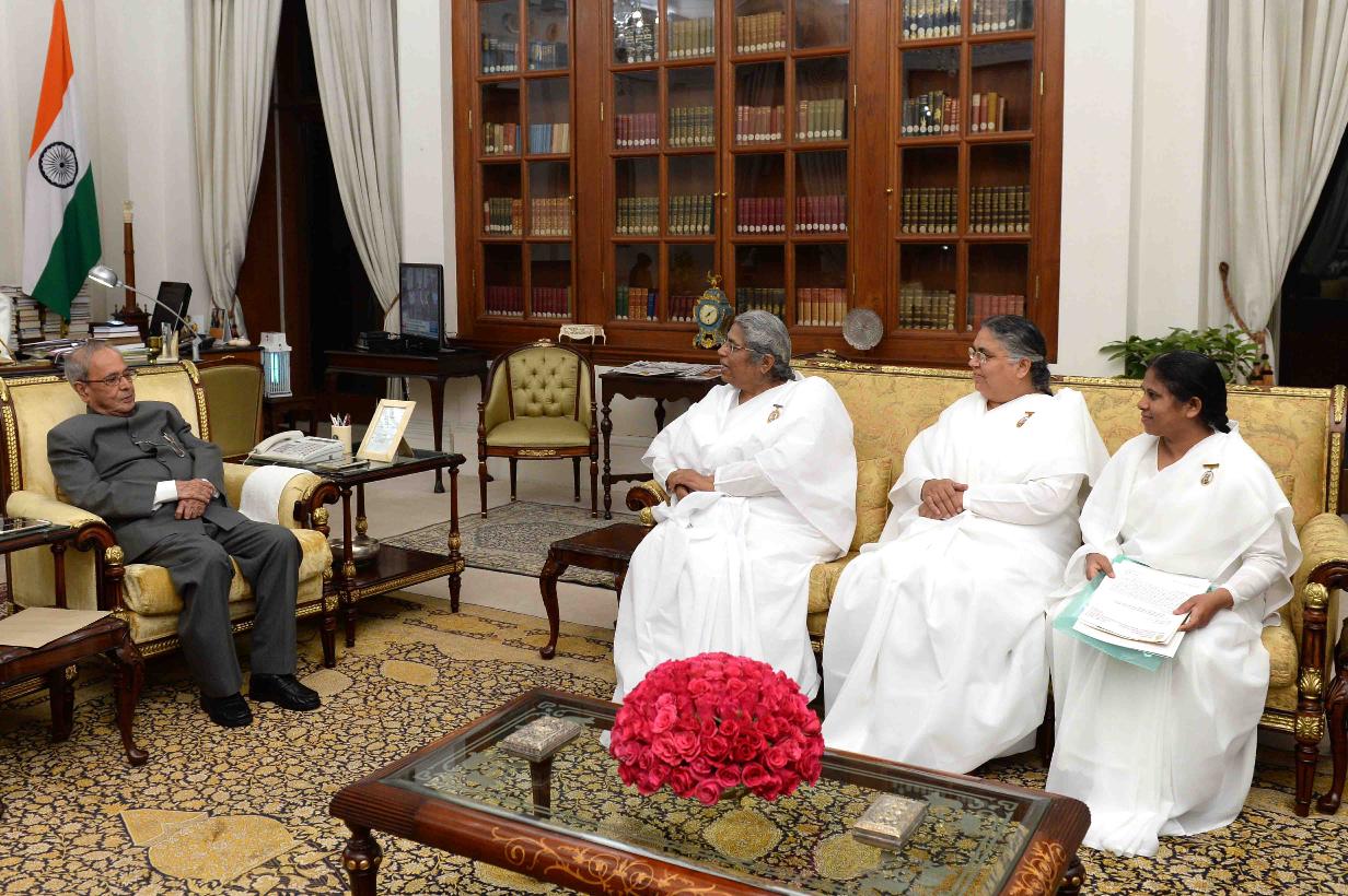 | Caption: | The President of India, Shri Pranab Mukherjee meeting with B.K. Asha, Director, B.K. Pushpa, B.K. Savita and B.K. Ansuya from Prajapita Brahma Kumaris Ishwariya Vishwa Vidyalaya, at Rashtrapati Bhavan on February 21, 2017. |