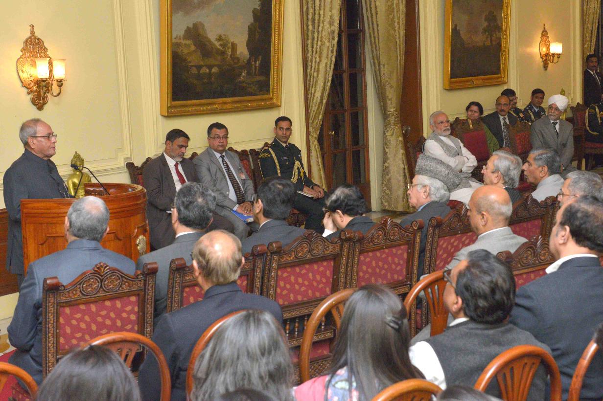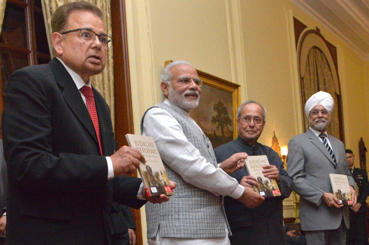 | Caption: | The Prime Minister of India, Shri Narendra Modi releasing a book 'Judicial Reforms Recent Global Trends' and presented the first copy to the President of India, Shri Pranab Mukherjee, at Rashtrapati Bhavan on February 22, 2017. |