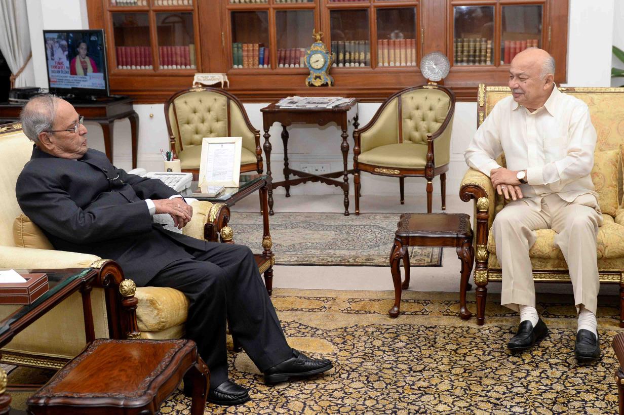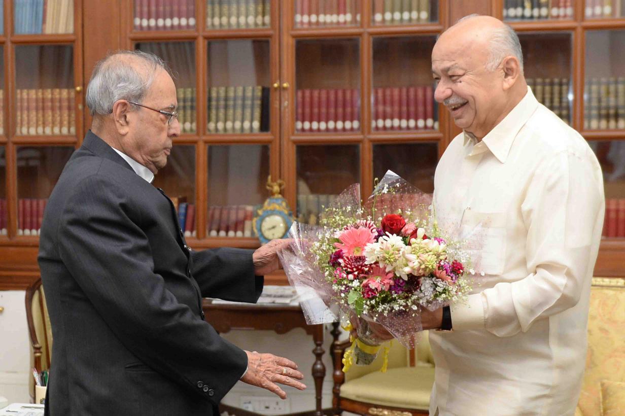 | Caption: | The President of India, Shri Pranab Mukherjee meeting with Shri Sushilkumar Shinde, former Union Minister of Home Affairs, at Rashtrapati Bhavan on February 28, 2017. |