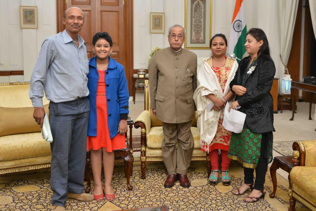 | Caption: | The President of India, Shri Pranab Mukherjee meeting with Shri Nand Kumar Ghosh from Jambuni, Bolpur along with his sister Ms. Sunanda Pal, at Rashtrapati Bhavan on February 24, 2017. |