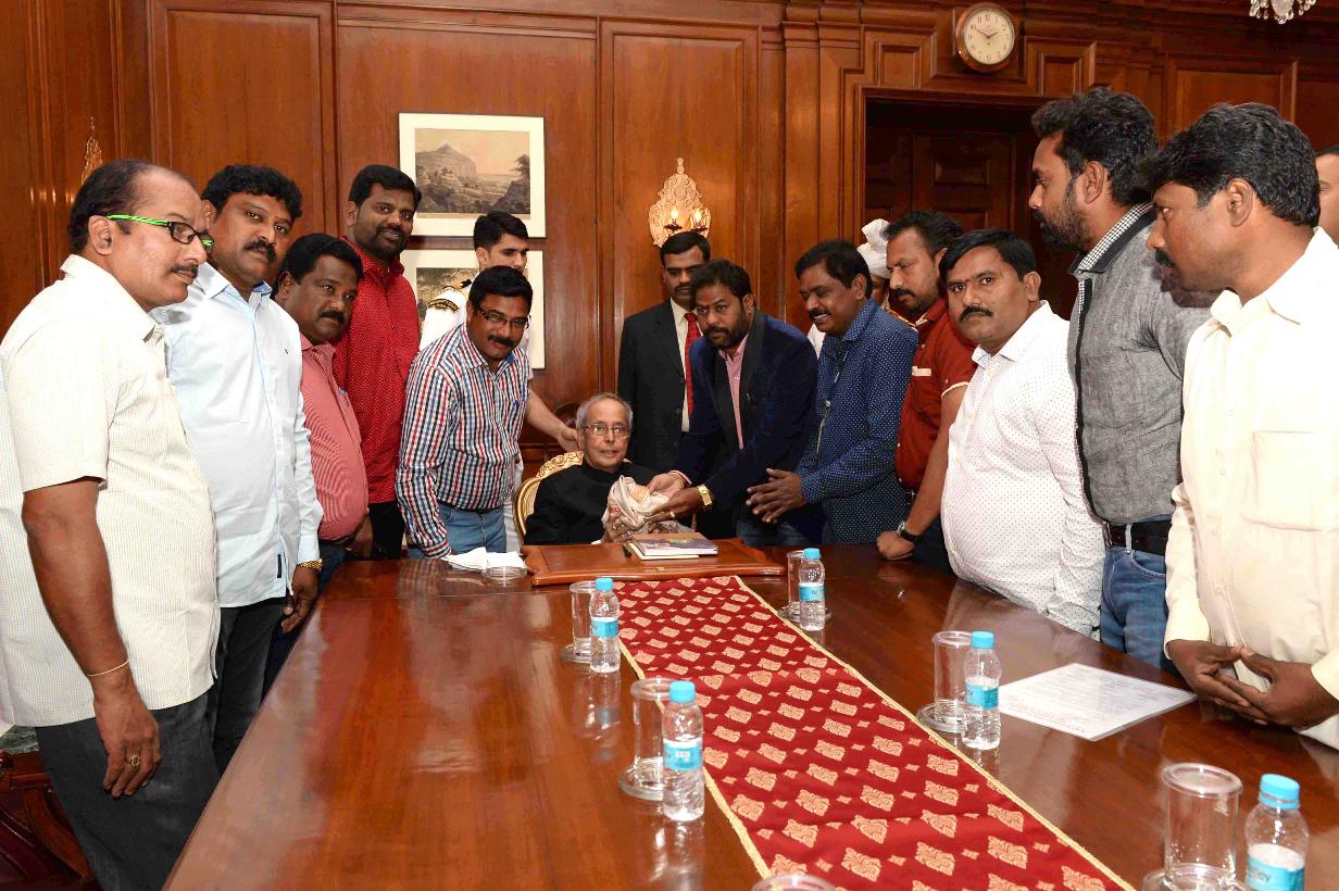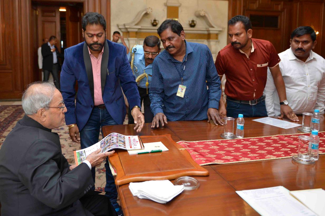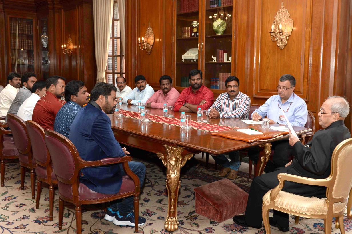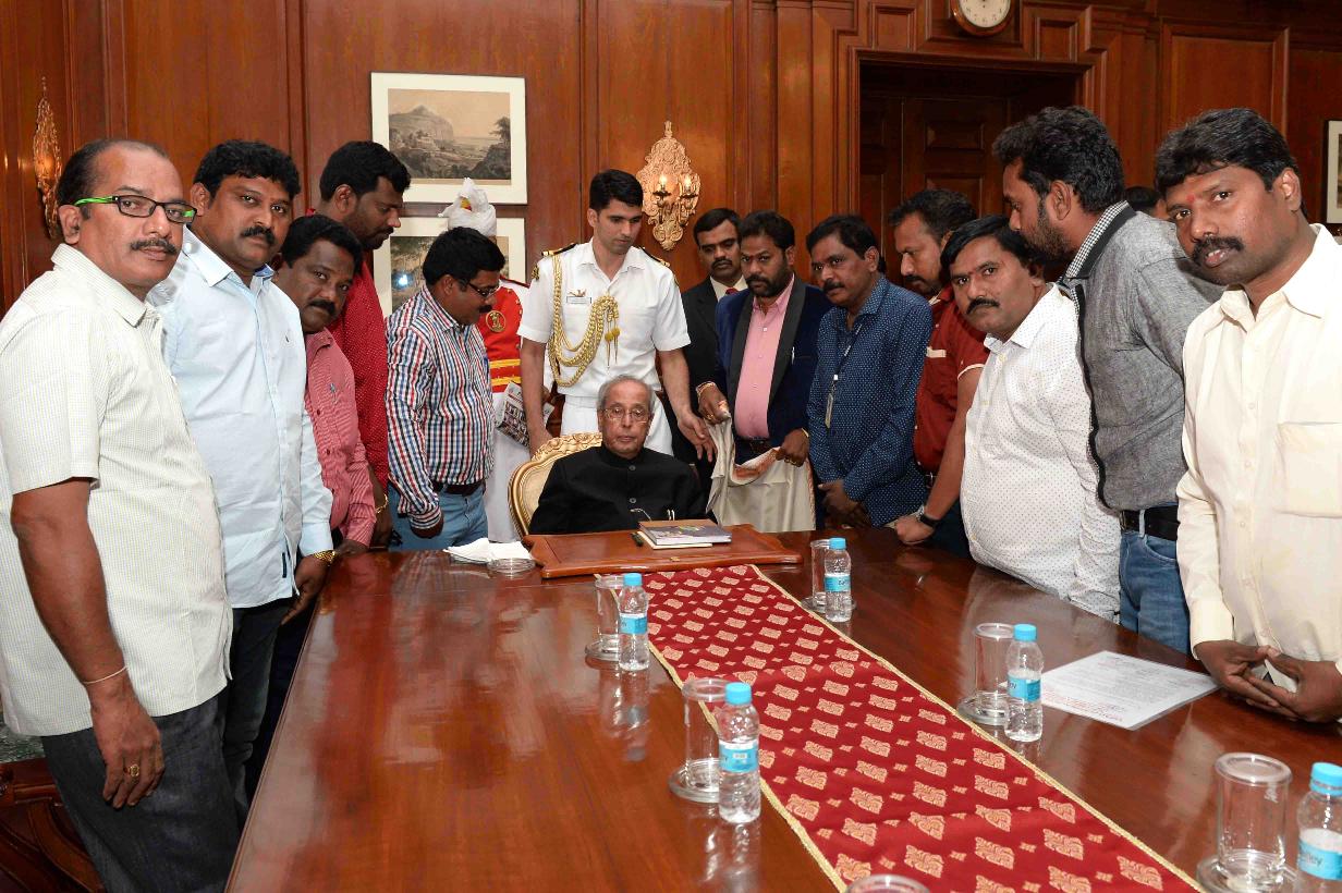 | Caption: | The President of India, Shri Pranab Mukherjee meeting with a delegation from Vizag Journalists Forum, Vishakhapatnam led by Shri Gantla Srinubabu, President, Vizag Journalists Forum, at Rashtrapati Bhavan on March 01, 2017. |