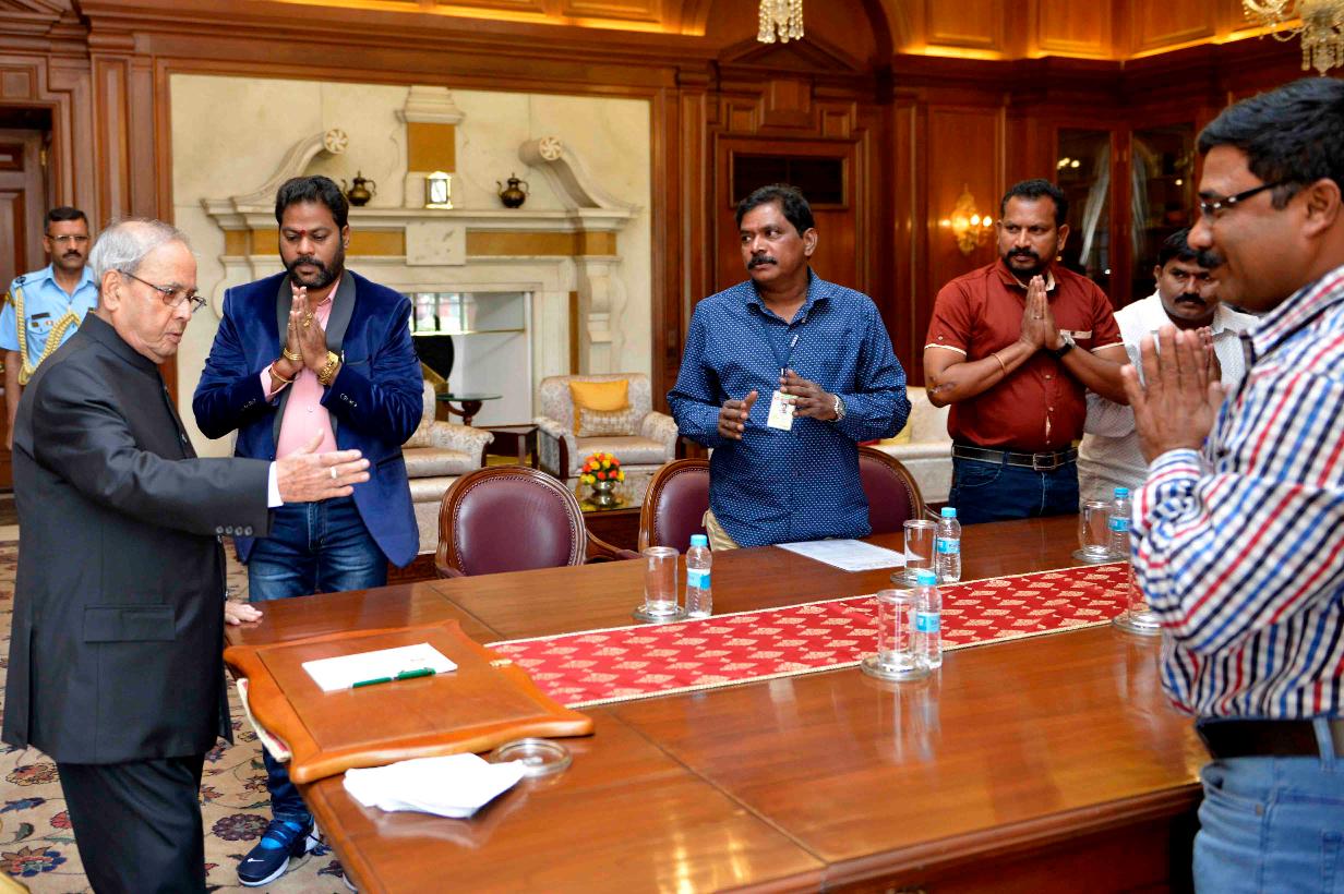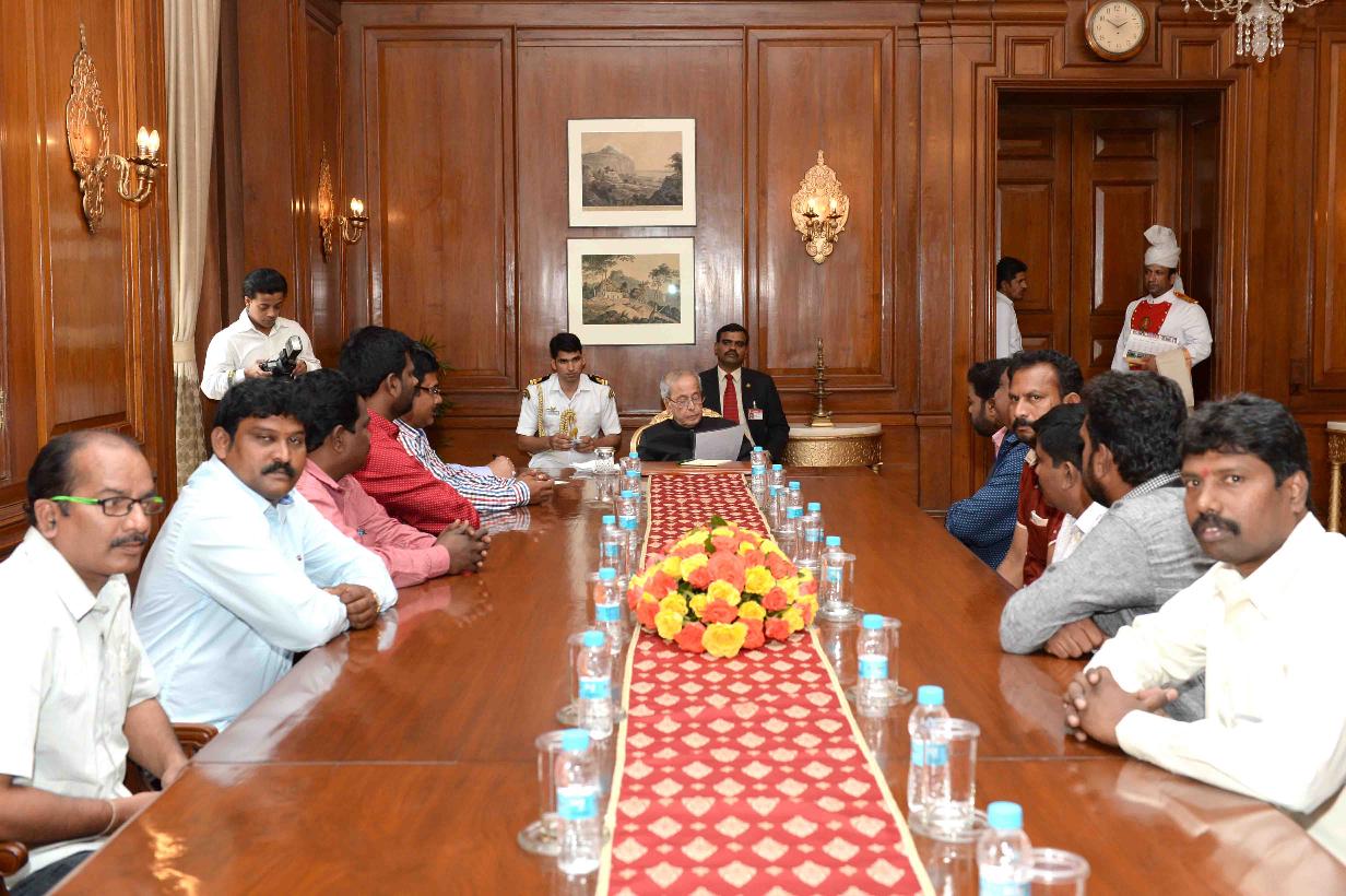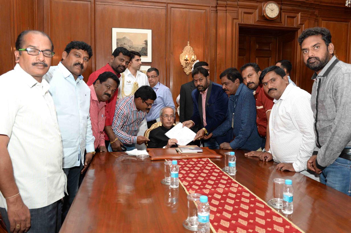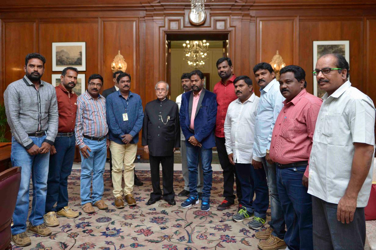| Caption: | The President of India, Shri Pranab Mukherjee meeting with a delegation from Vizag Journalists Forum, Vishakhapatnam led by Shri Gantla Srinubabu, President, Vizag Journalists Forum, at Rashtrapati Bhavan on March 01, 2017. |