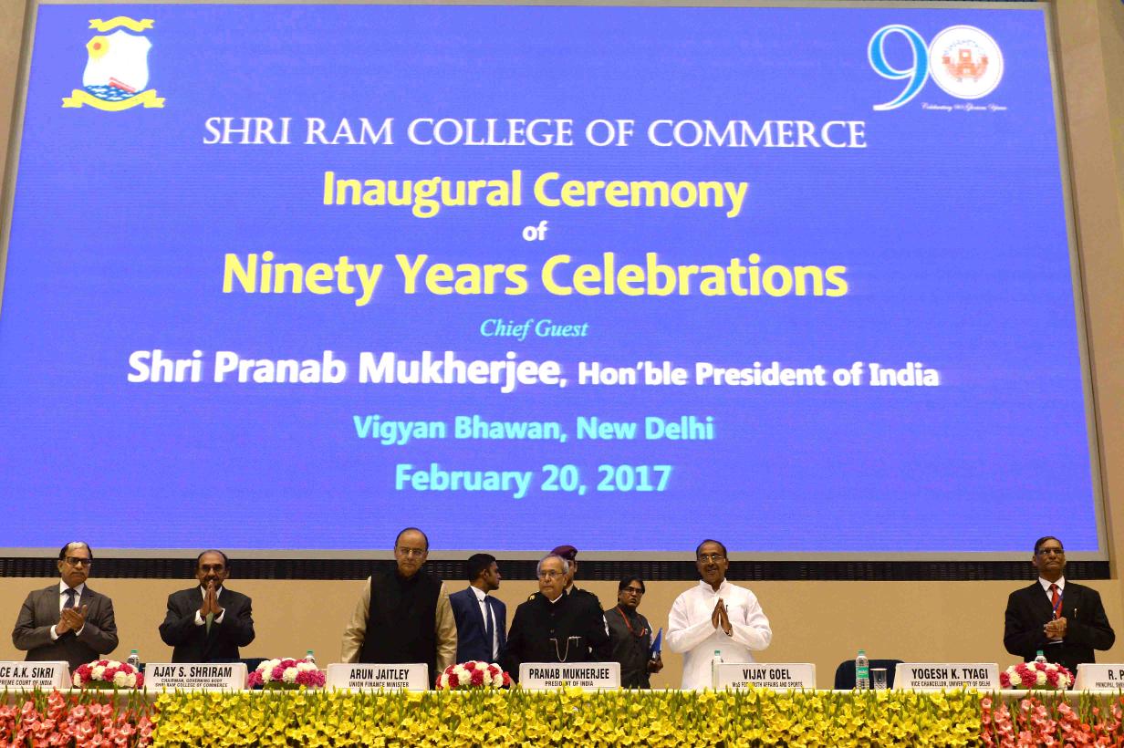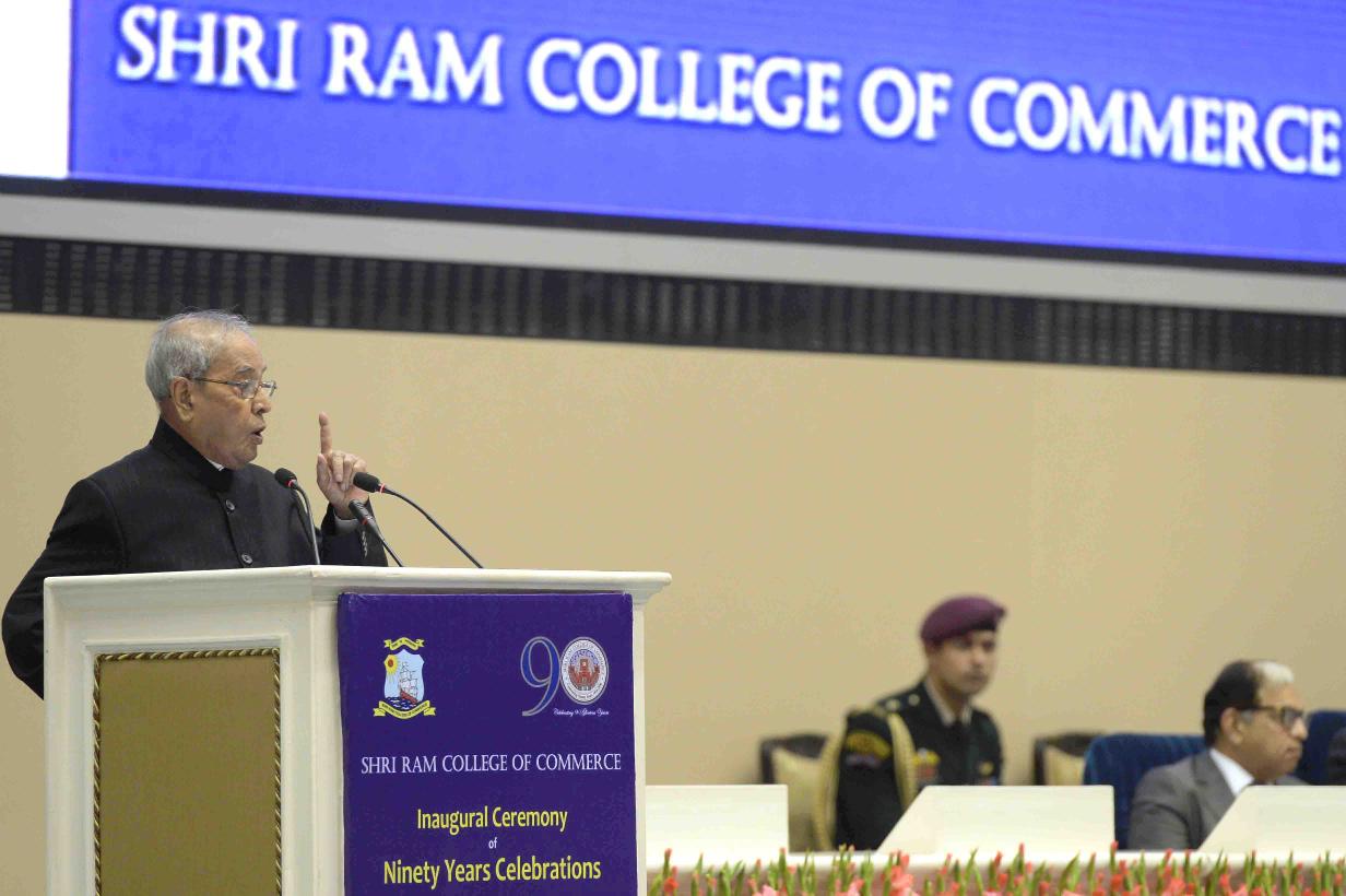 | Caption: | The President of India, Shri Pranab Mukherjee addressing at the inaugural ceremony of the 90th Anniversary of Shri Ram College of Commerce, in New Delhi on February 20, 2017. |
