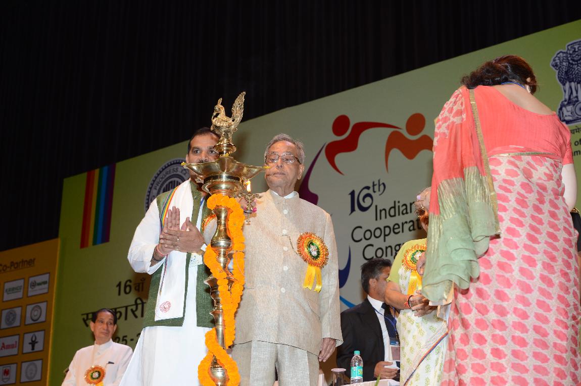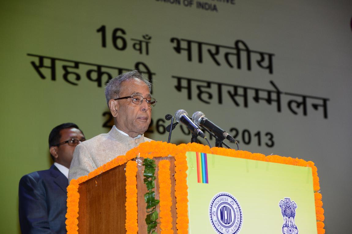 | Caption: | The President of India Shri Pranab Mukherjee at the Inauguration of 16th Indian Cooperative Congress at Siri Fort Auditorium on 25 June 2013 |
