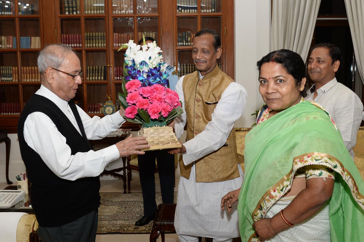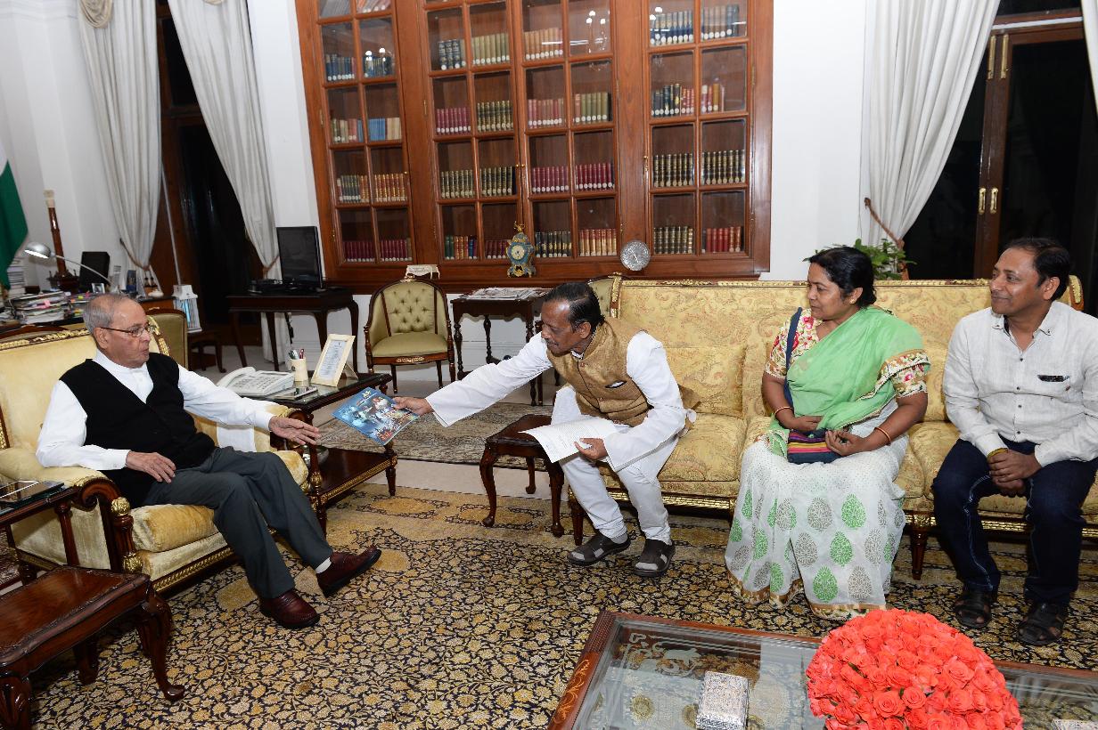 | Caption: | The President of India, Shri Pranab Mukherjee meeting with Shri Aloke Nandi, General Secretary, Dantan Sports & Cultural Association & Maitree with others, at Rashtrapati Bhavan on March 07, 2017. |