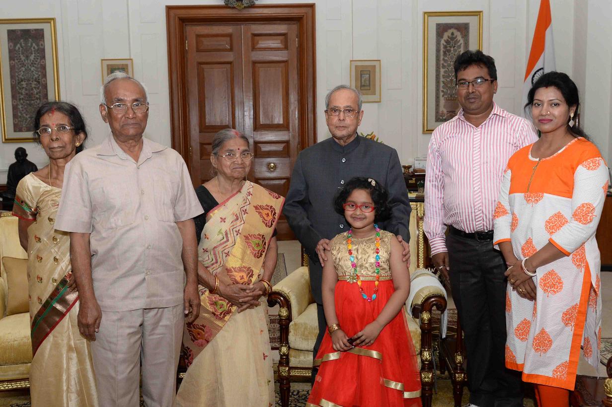 | Caption: | The President of India, Shri Pranab Mukherjee meeting with Shri Jaideep Sen along with family members from Kolkata, at Rashtrapati Bhavan on March 14, 2017. |