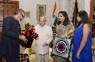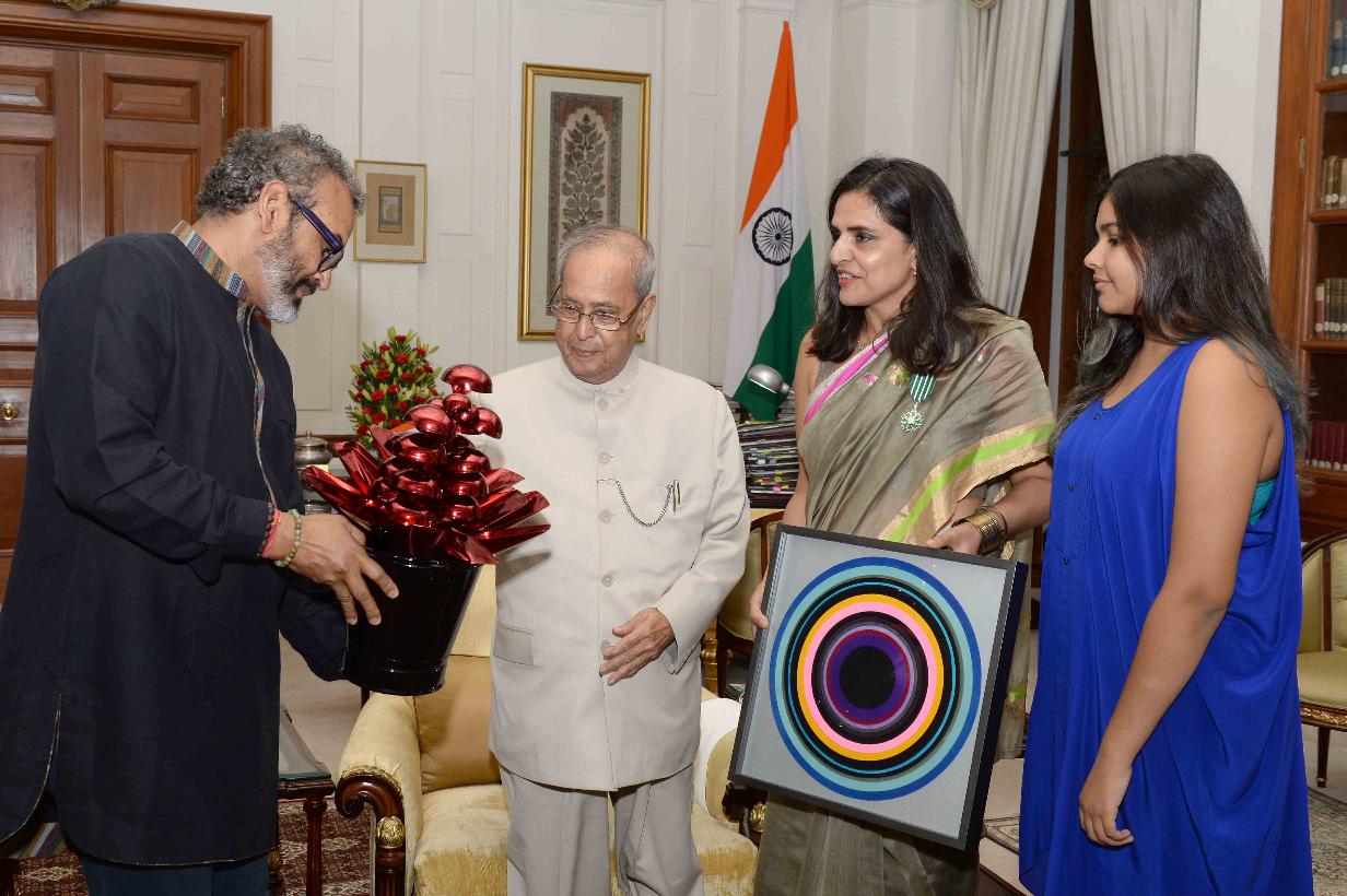 | Caption: | The President of India, Shri Pranab Mukherjee meeting with Shri Subodh Gupta and Smt. Bharti Kher, participants of In-Residence Programme for Artists, at Rashtrapati Bhavan on March 09, 2017. |