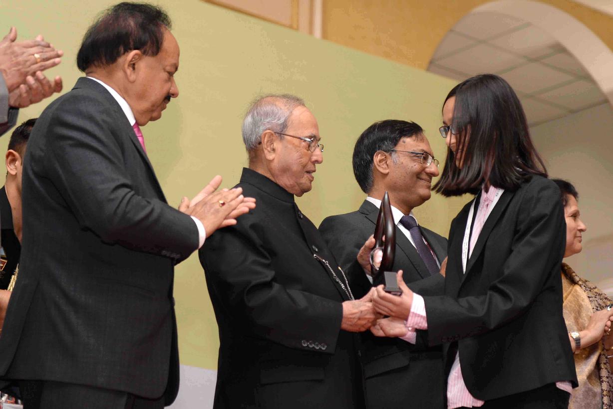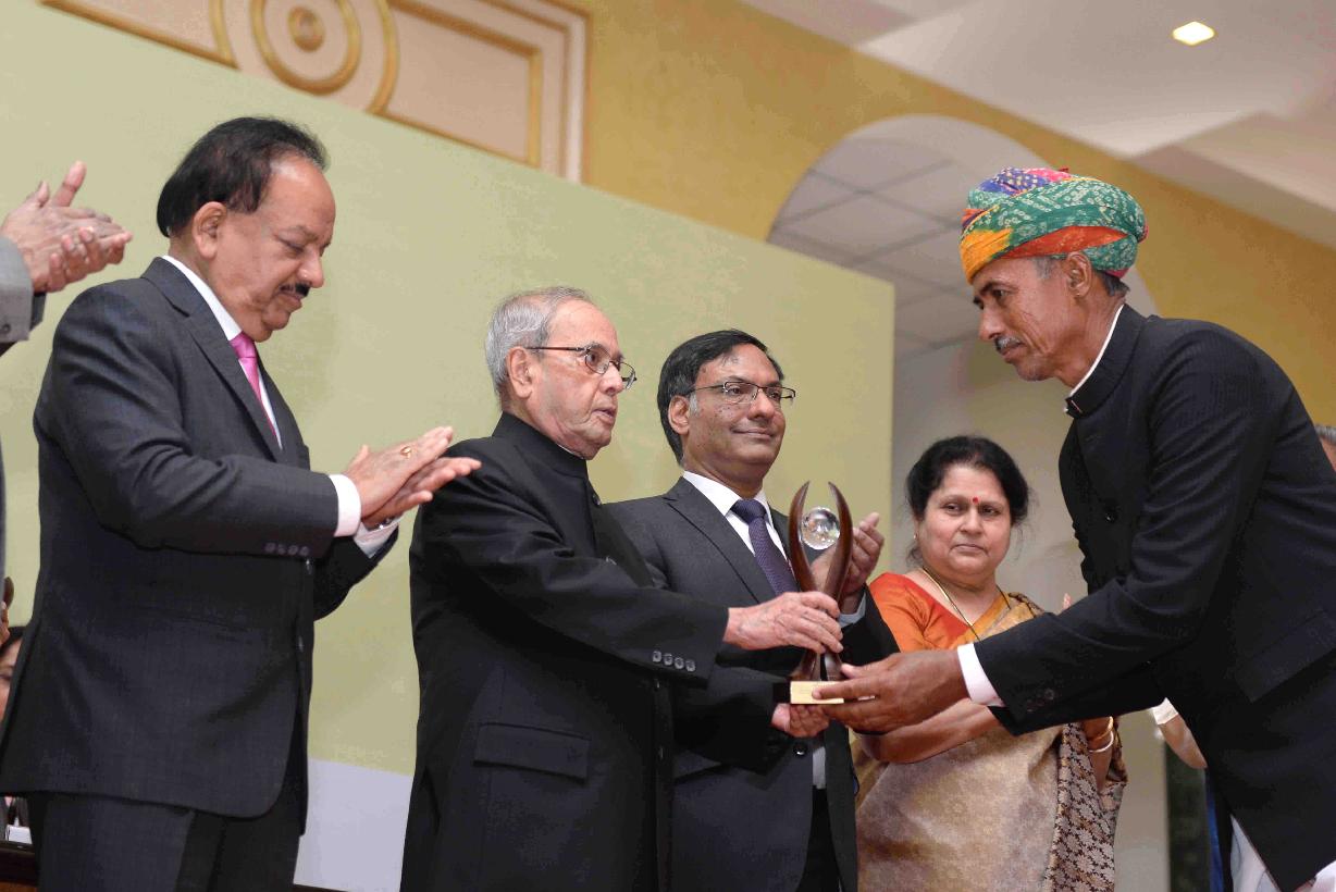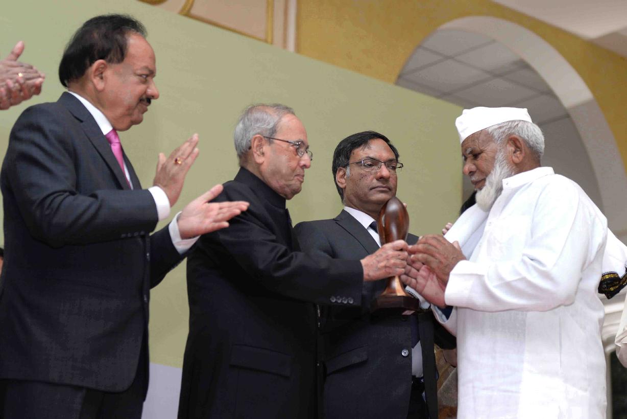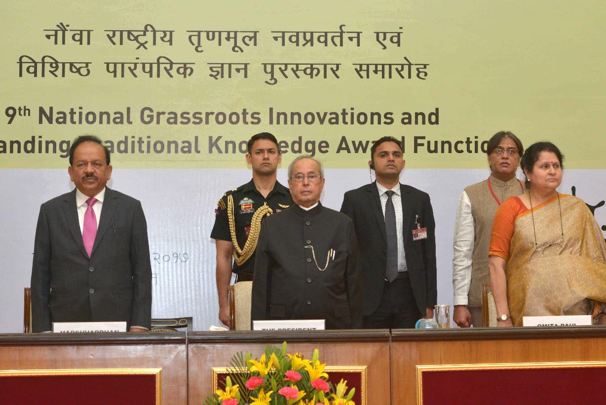 | Caption: | The President of India, Shri Pranab Mukherjee presenting the 9th National Biennial Awards for Grassroots Innovations and Outstanding Traditional Knowledge, at Rashtrapati Bhavan Cultural Centre on March 04, 2017. |