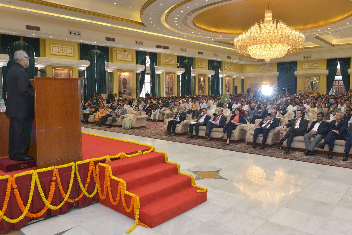 | Caption: | The President of India, Shri Pranab Mukherjee addressing at the presentation of the 9th National Biennial Awards for Grassroots Innovations and Outstanding Traditional Knowledge, at Rashtrapati Bhavan Cultural Centre on March 04, 2017. |