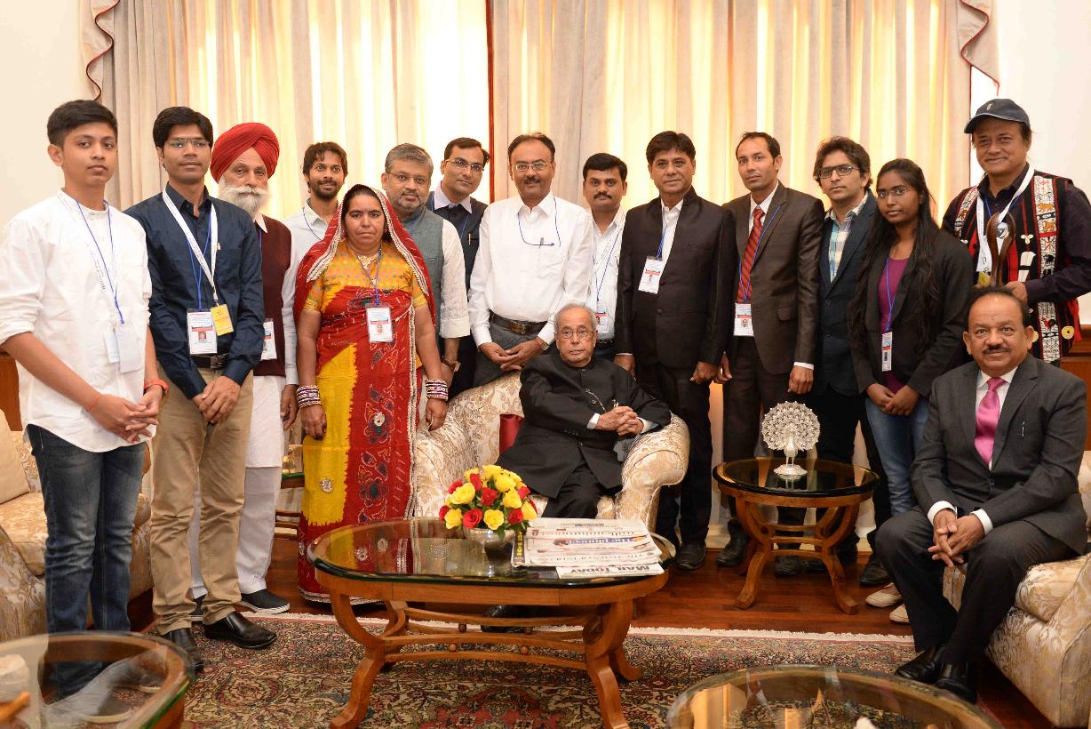 | Caption: | The President of India, Shri Pranab Mukherjee with the Innovation Scholars, Artists and Writers In-Residence, at Rashtrapati Bhavan Cultural Centre on March 04, 2017. |
