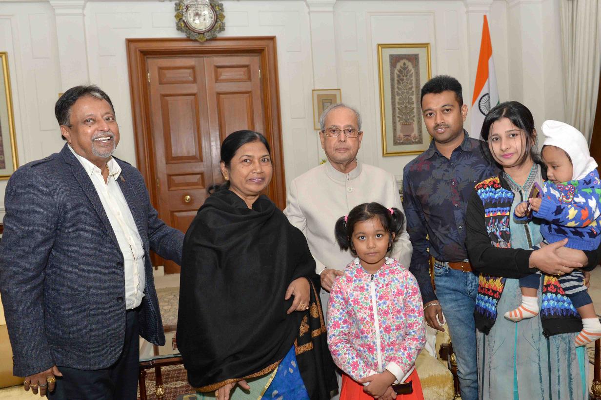 | Caption: | The President of India, Shri Pranab Mukherjee meeting with Shri Mukul Roy, MP (RS) along with his family members, at Rashtrapati Bhavan on March 15, 2017. |