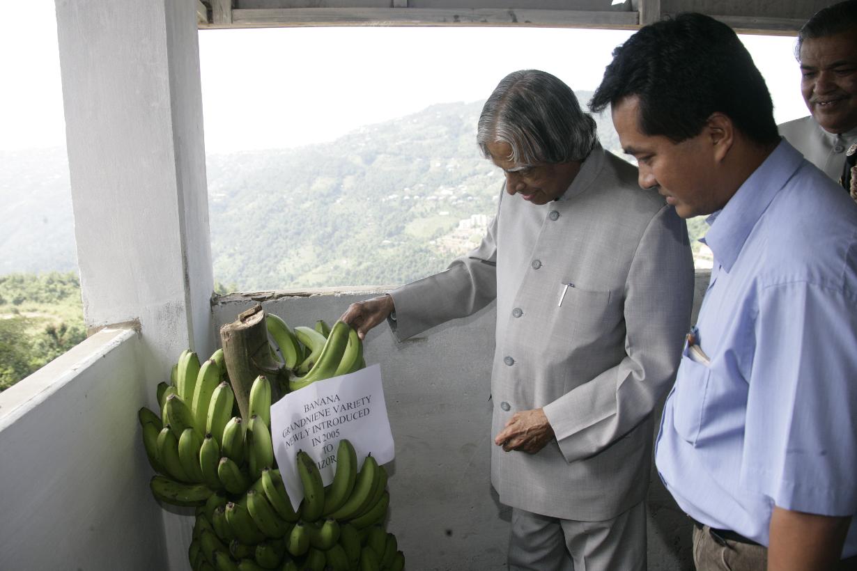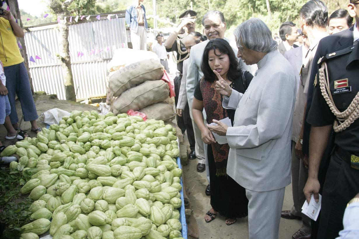 | Caption: | The President of India, Dr A P J Abdul Kalam visiting Chow Chow (Squash) Plantations belonging to Local Farmers visit Local Development Works at Sihphir Village in Mizoram on Oct 17, 2006 |