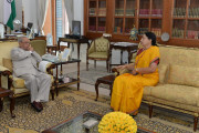 | Caption: | The President of India, Shri Pranab Mukherjee meeting with Smt. Jaya Dasgupta, Administrative Member, Central Administrative Tribunal, Calcutta Bench, at Rashtrapati Bhavan on March 15, 2017. |
