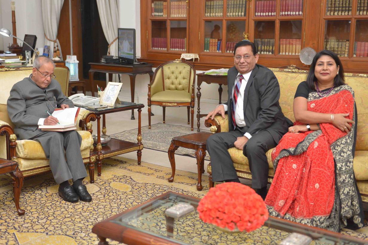 | Caption: | The President of India, Shri Pranab Mukherjee meeting with Smt. & Shri Srenik Sett, at Rashtrapati Bhavan on March 16, 2017. |