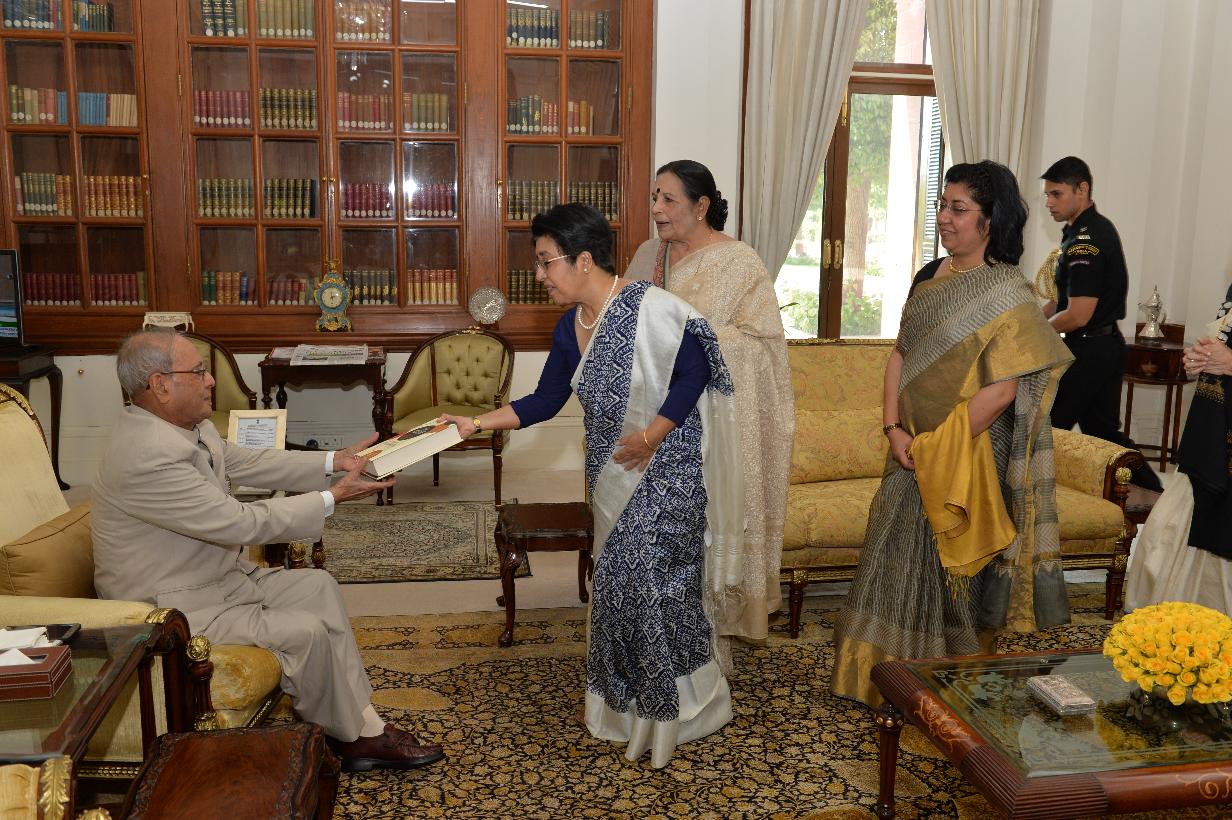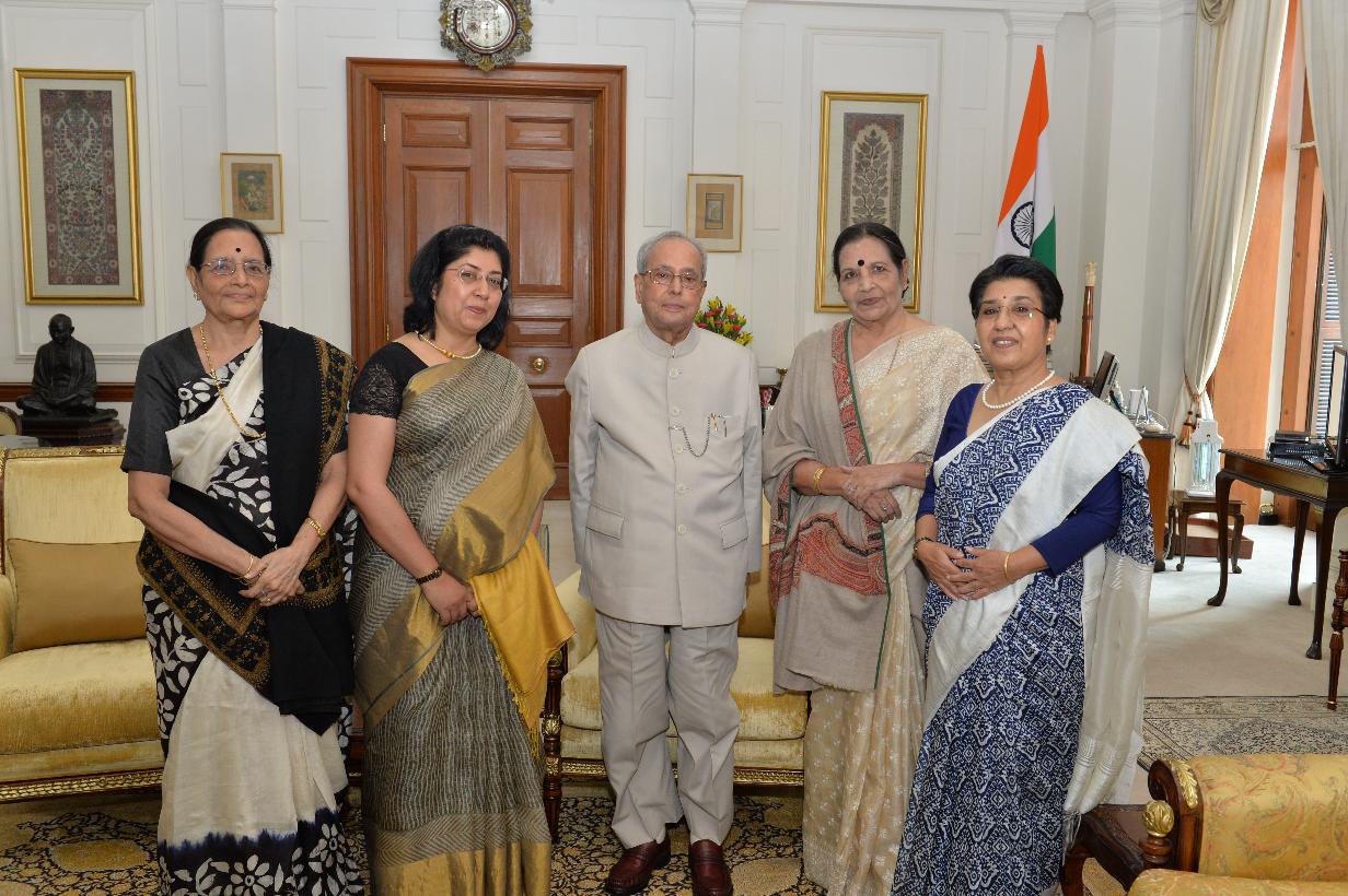| Caption: | The President of India, Shri Pranab Mukherjee meeting with Ms. Chandana Mukherjee, Ms. Bandana Chatterjee, Ms. Devarati Mukherjee and Ms. Kakoli Choudhuri, at Rashtrapati Bhavan on March 15, 2017. |