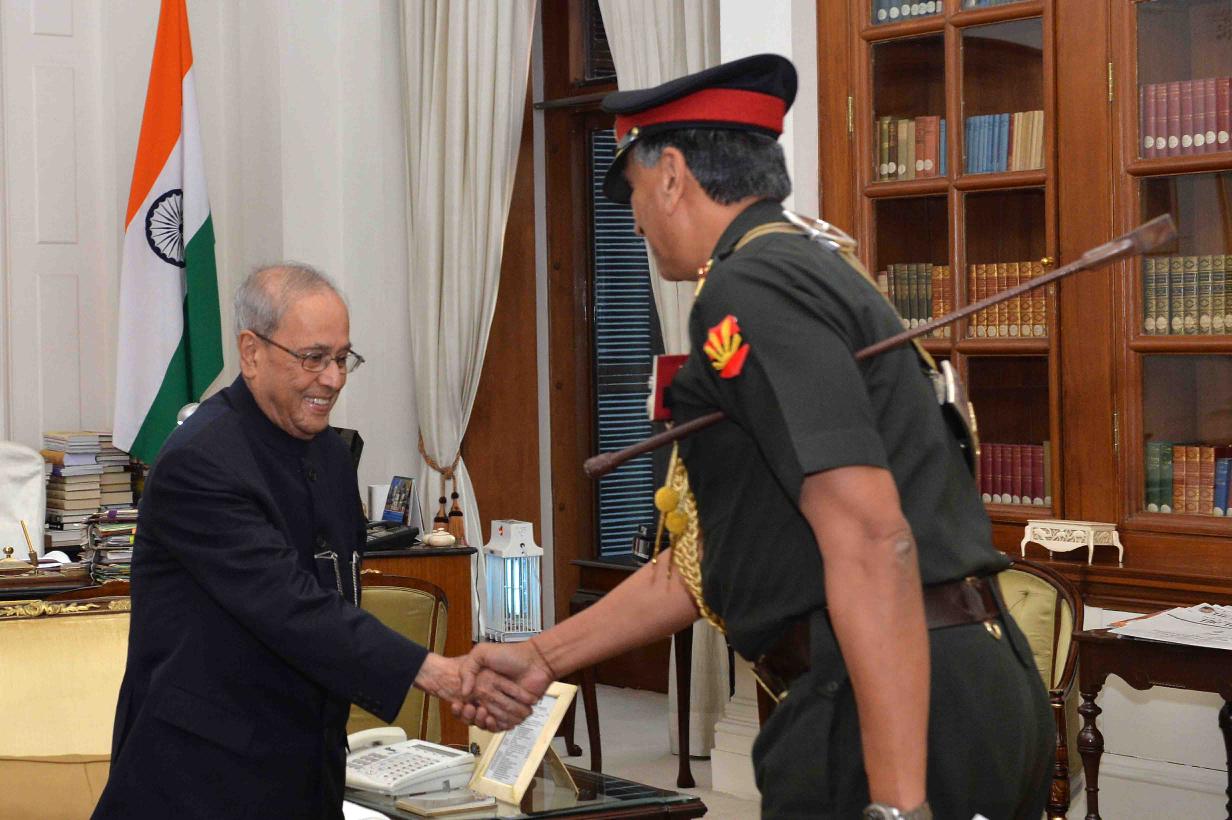 | Caption: | The President of India, Shri Pranab Mukherjee meeting with Lt. Gen. Praveen Bakshi, GOC-in-C, Eastern Command and Honorary ADC to the President, at Rashtrapati Bhavan on March 18, 2017. |