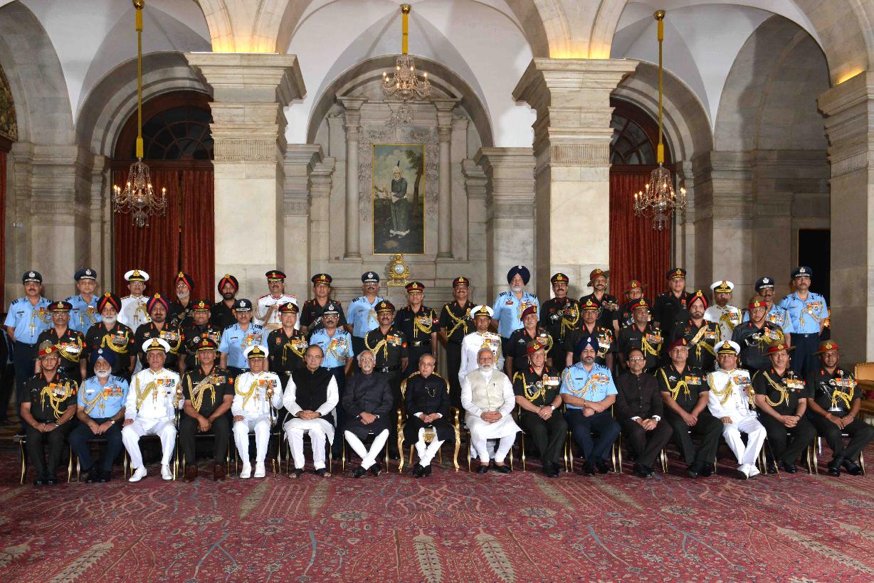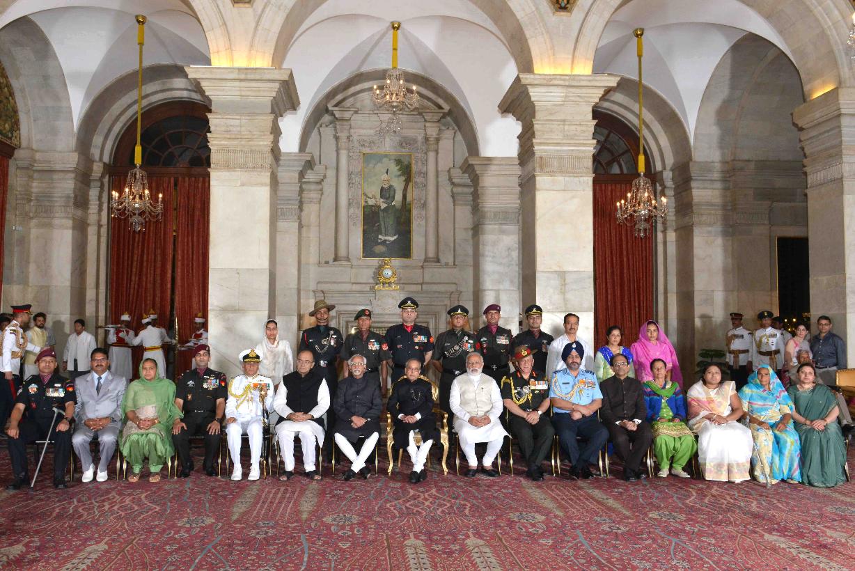 | Caption: | The President of India, Shri Pranab Mukherjee with the recipients of Gallantry Awards and Distinguished Service Decorations, at a Defence Investiture Ceremony, in Rashtrapati Bhavan on March 20, 2017. |