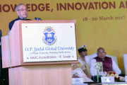 | Caption: | The President of India, Shri Pranab Mukherjee addressing at the inauguration of International Conference on the theme of "Universities of the Future: Knowledge, Innovation and Responsibility , at O.P. Jindal Global University (JGU), Sonipat, in Haryana on March 18, 2017. |