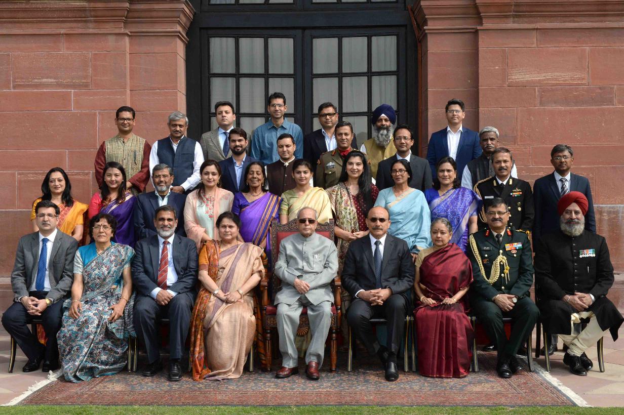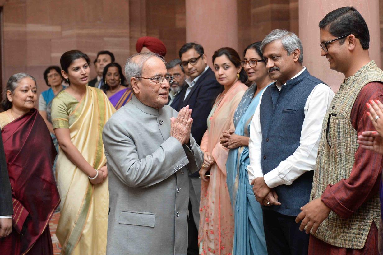 | Caption: | The President of India, Shri Pranab Mukherjee meeting with the Contributing Authors of the Sahapedia Volumes on Rashtrapati Bhavan, at Rashtrapati Bhavan on February 16, 2017. |