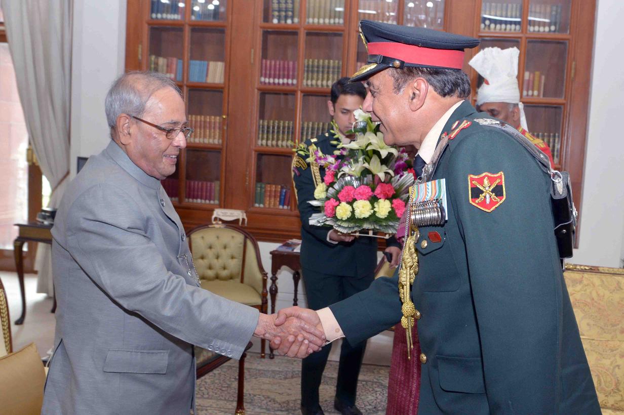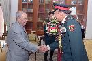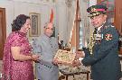 | Caption: | The President of India, Shri Pranab Mukherjee meeting with Lt. Gen. Raman Dhawan, VSM, ADC, Chief of Staff, Hqrs Army Training Command along with his wife Smt. Prema Dhawan, at Rashtrapati Bhavan on February 16, 2017. |