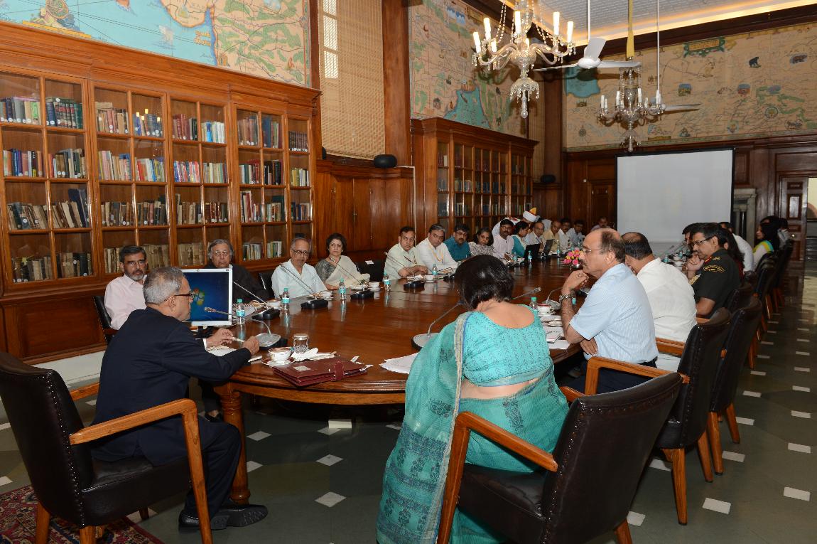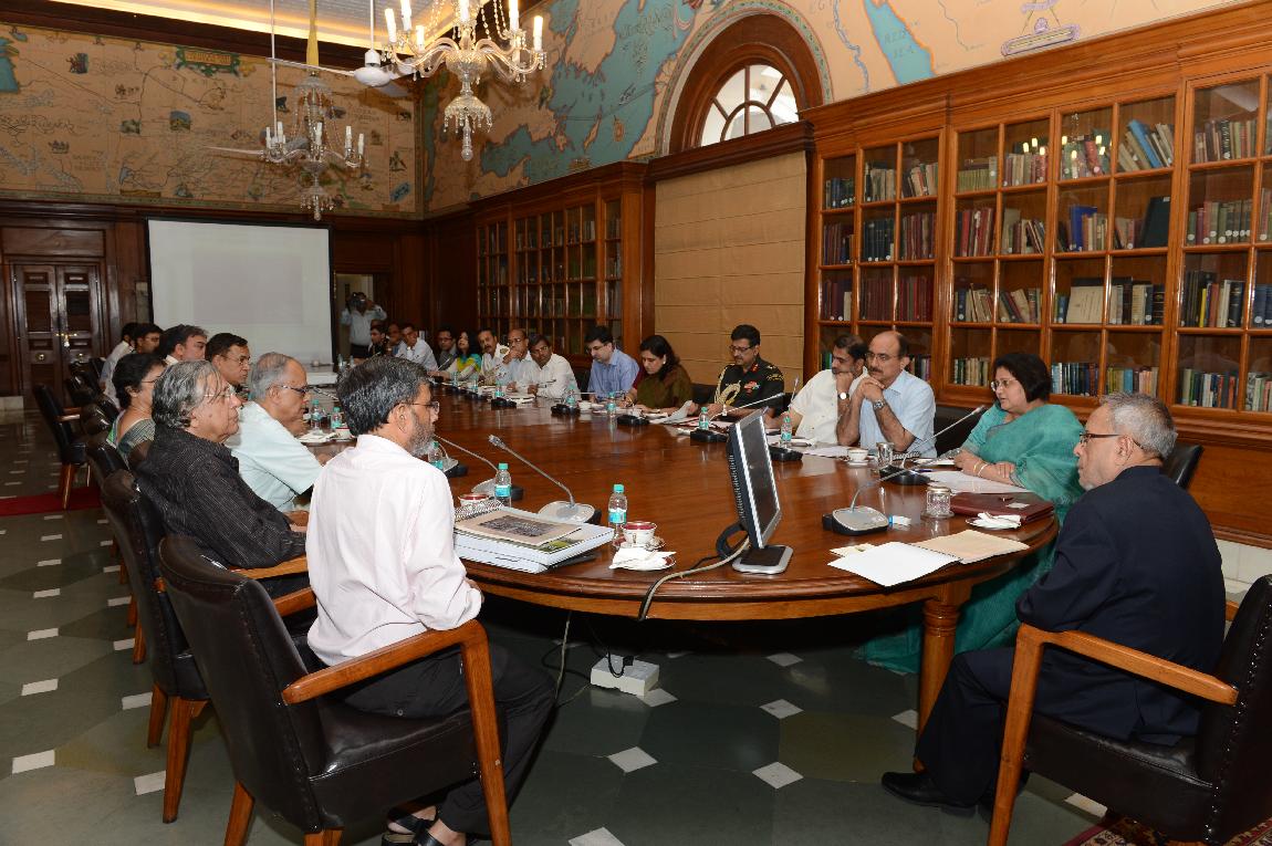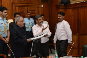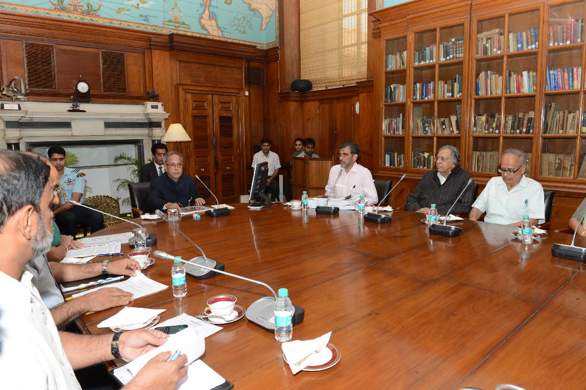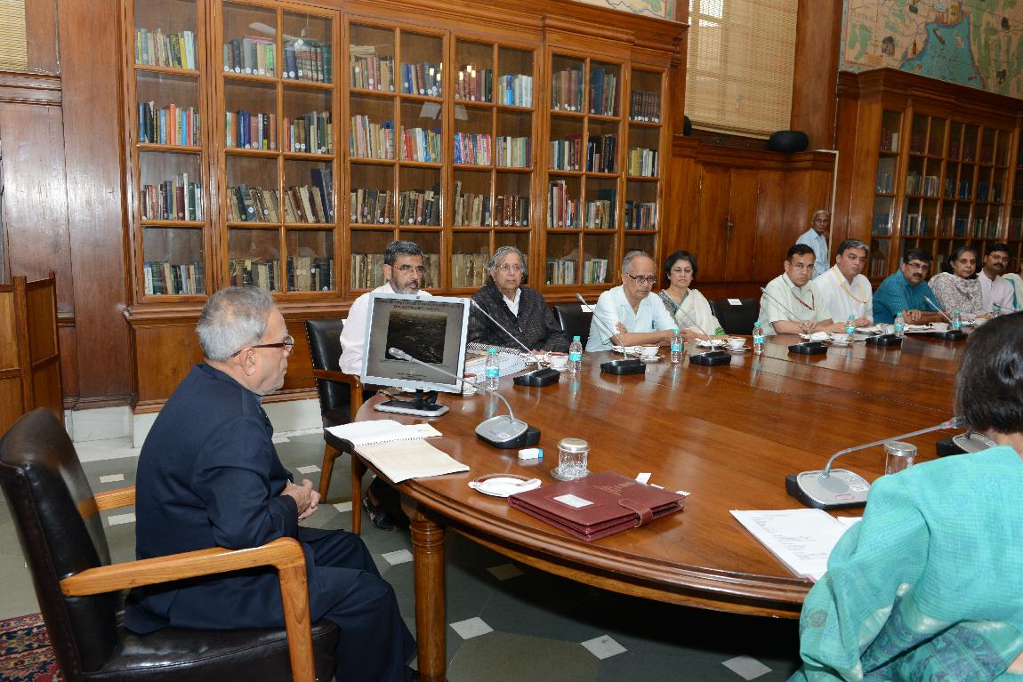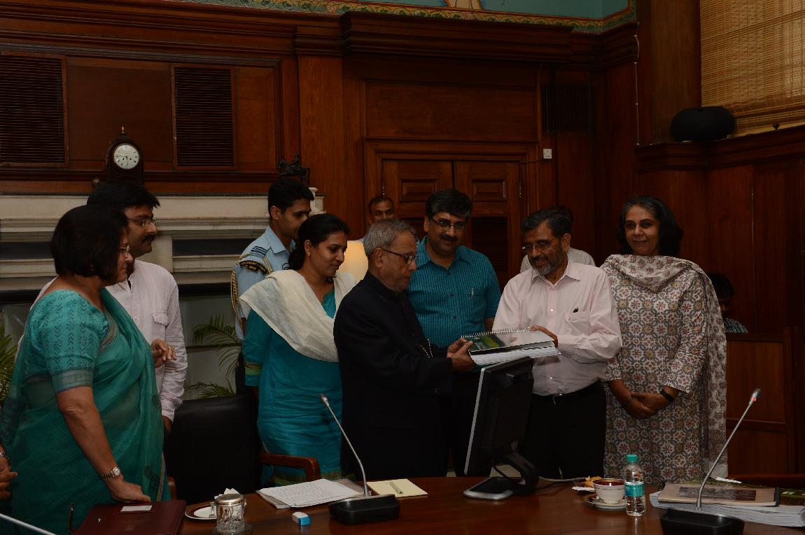 | Caption: | The President of India Shri Pranab Mukherjee Presenting Report on Heritage Conservation Plan for President's Estate by Prof. AGK Menon on 26 June 2013 |