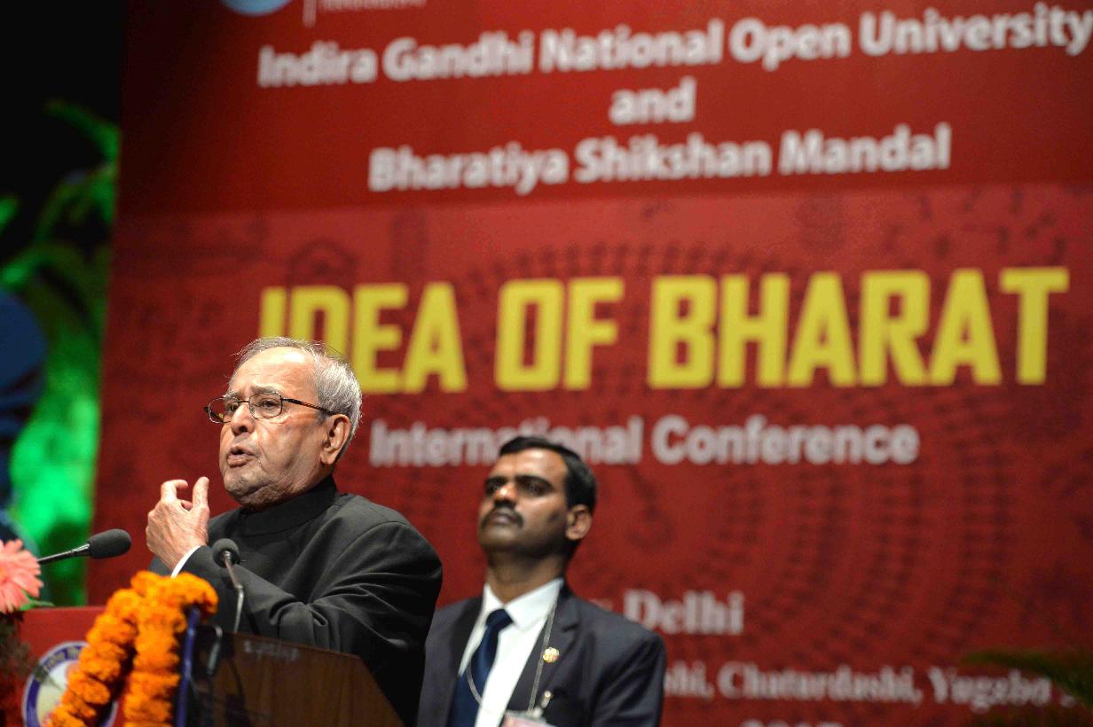 | Caption: | The President of India, Shri Pranab Mukherjee inaugurating the International Conference titled Bharat Bodh (ldea of Bharat) co-hosted by the IGNOU and Bharatiya Shikshan Mandal, in New Delhi on February 23, 2017. |