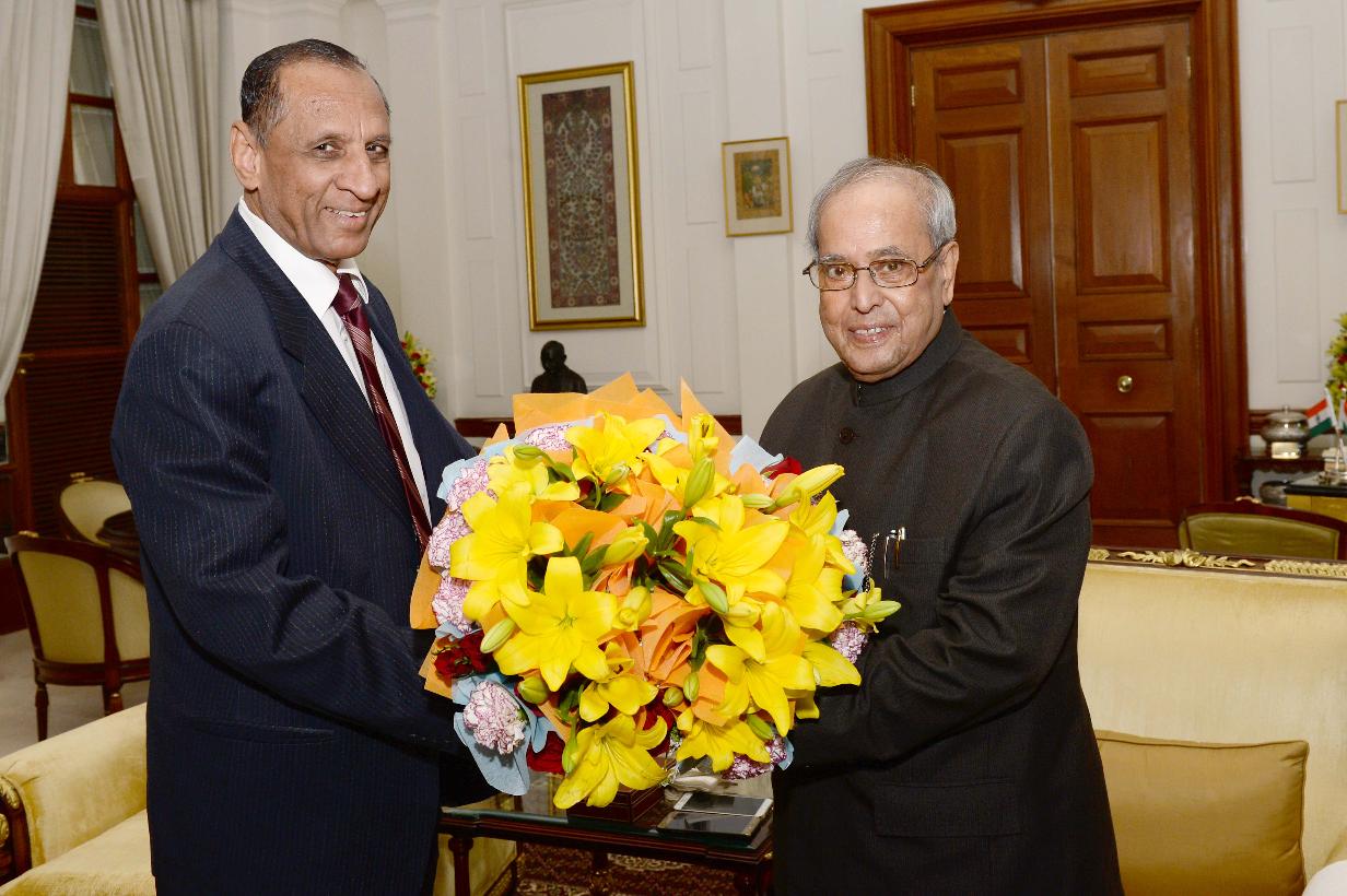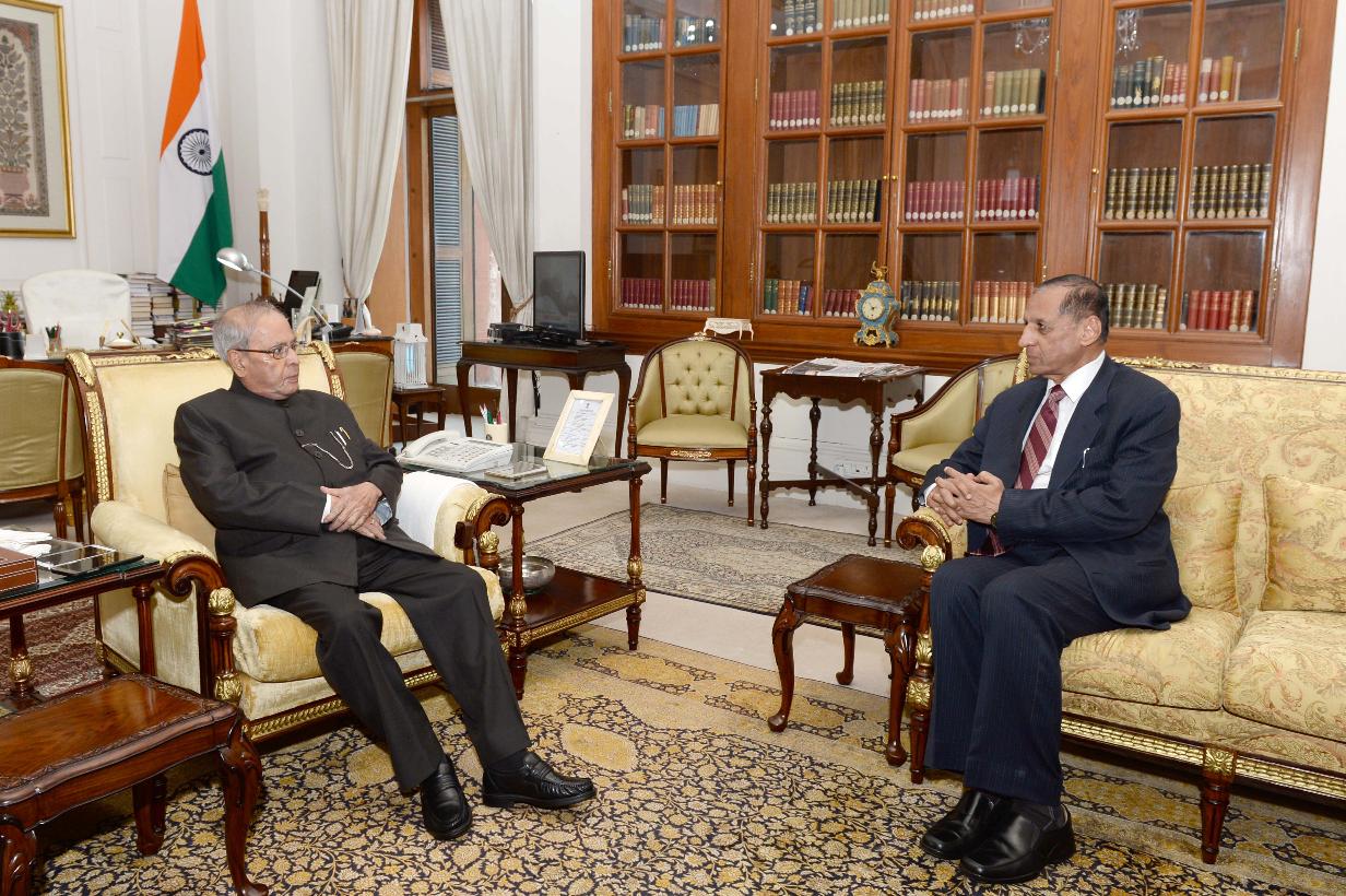 | Caption: | The Governor of Andhra Pradesh and Telangana, Shri E.S.L. Narasimhan calling on the President of India, Shri Pranab Mukherjee, at Rashtrapati Bhavan on February 27, 2017. |