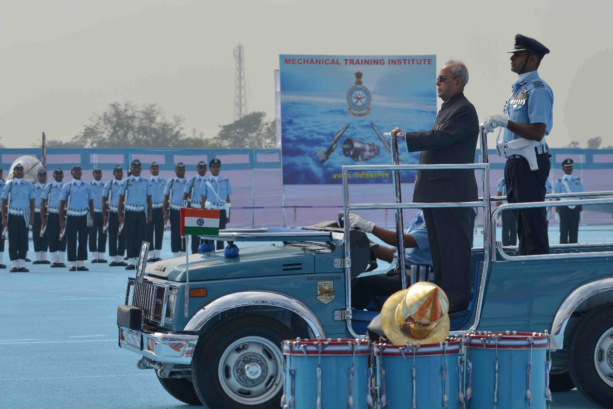| Caption: | The President of India, Shri Pranab Mukherjee inspecting the Guard of Honour at the presentation of the Standard to 125 (H) Sqn and Colours to MTI of Indian Air Force, at AF Station, Tambaram, in Tamil Nadu on March 03, 2017. |