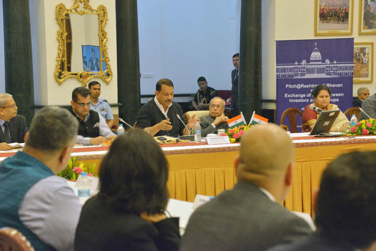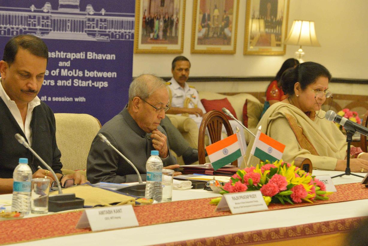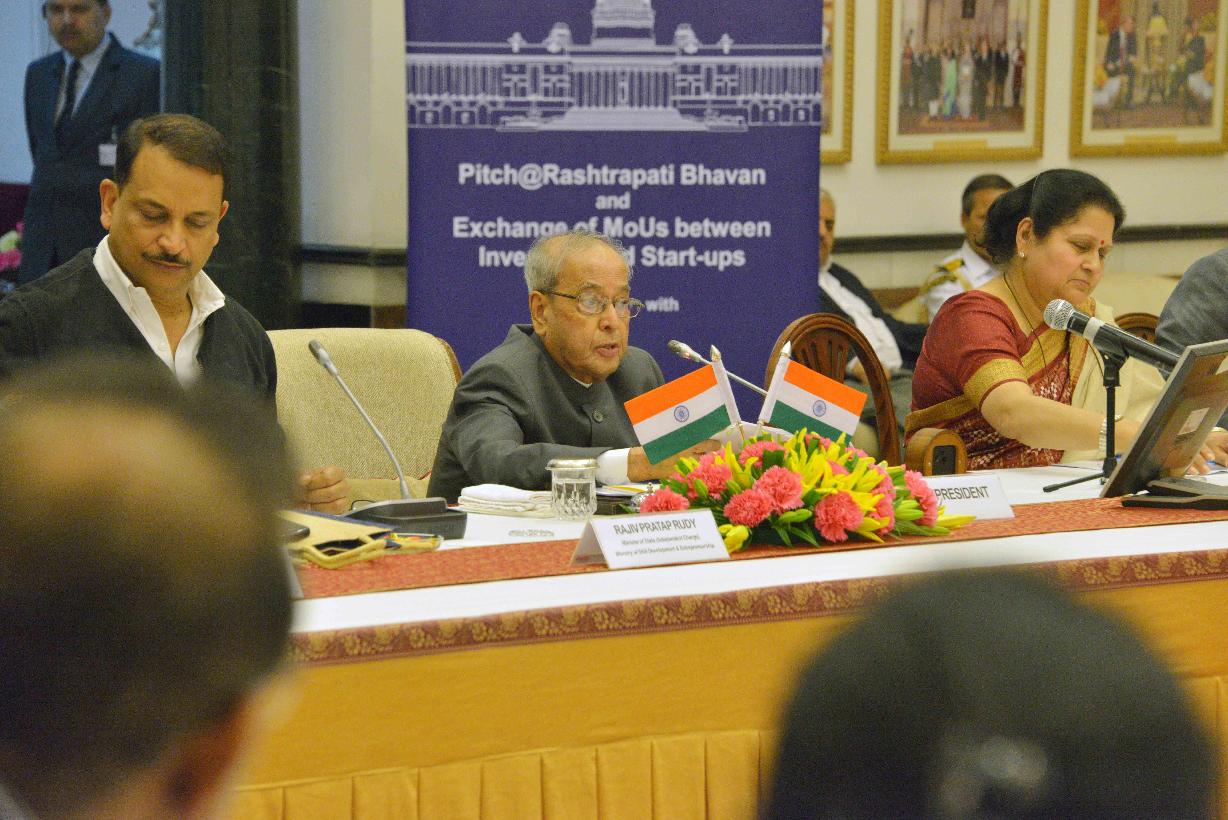 | Caption: | The President of India, Shri Pranab Mukherjee attending the concluding session of Pitch@RB and witnessing the exchange of signed MoUs between VCs and start-ups, at Rashtrapati Bhavan Cultural Centre on March 07, 2017. |