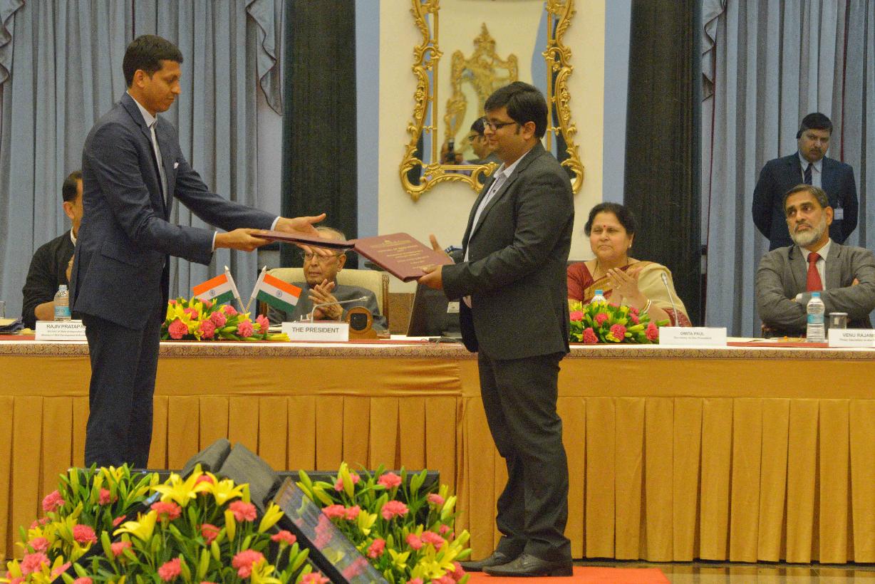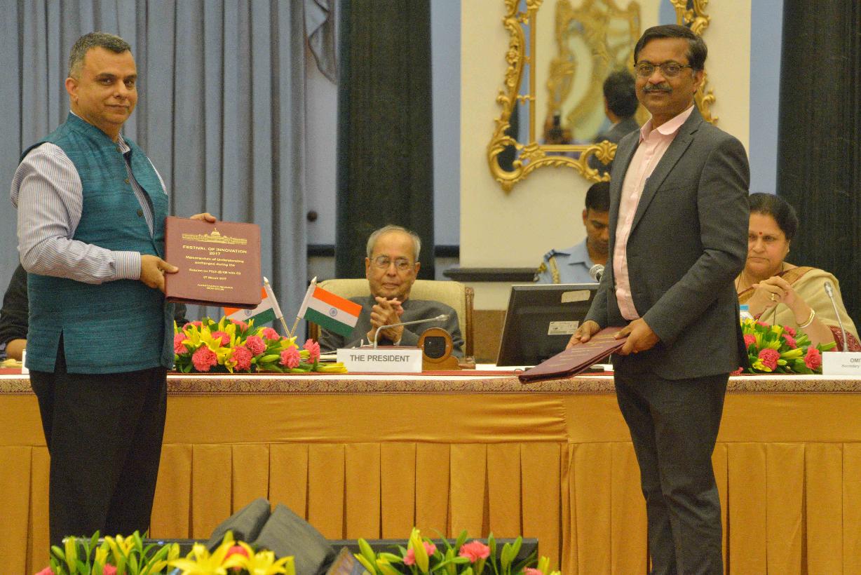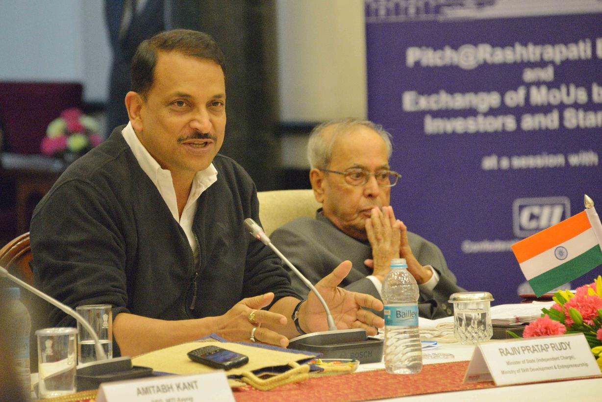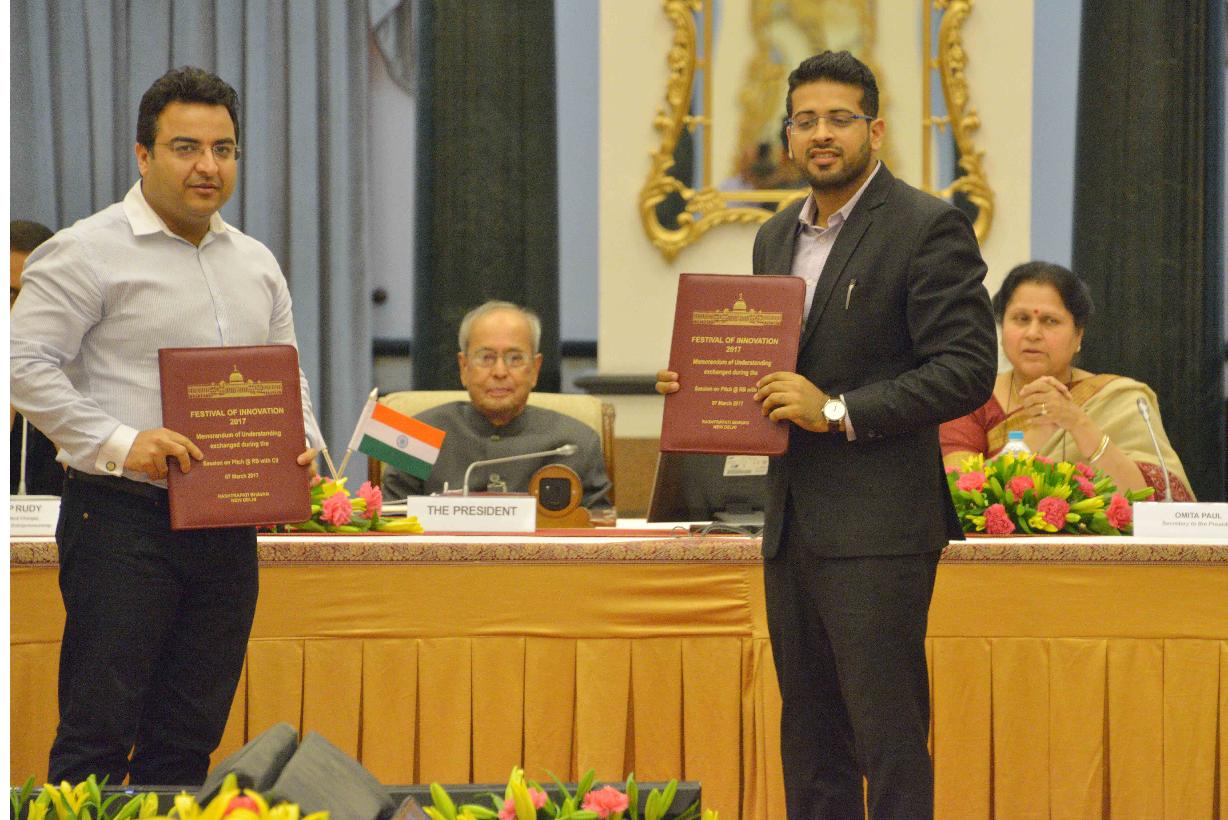 | Caption: | The President of India, Shri Pranab Mukherjee attending the concluding session of Pitch@RB and witnessing the exchange of signed MoUs between VCs and start-ups, at Rashtrapati Bhavan Cultural Centre on March 07, 2017. |