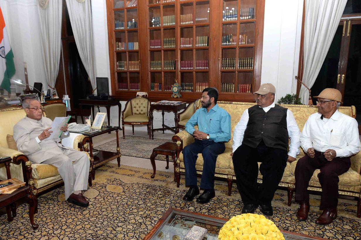 | Caption: | The President of India, Shri Pranab Mukherjee meeting with Shri Ashok Das, Shri Arup Borkotoki and Shri Dipak Burman, Social Workers from Tinsukia, at Rashtrapati Bhavan on March 21, 2017. |