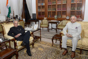 | Caption: | The Governor of Mizoram, Lt. Gen. Nirbhay Sharma calling on the President of India, Shri Pranab Mukherjee, at Rashtrapati Bhavan on March 22, 2017. |
