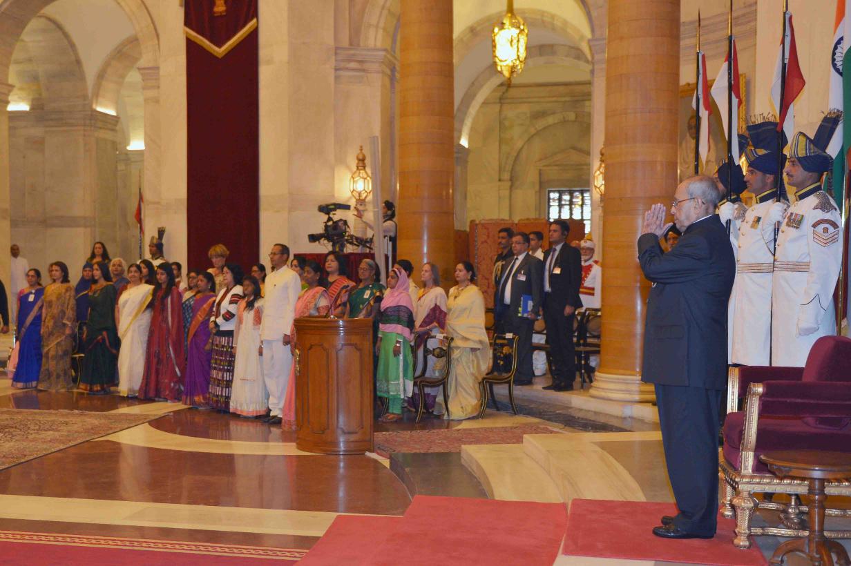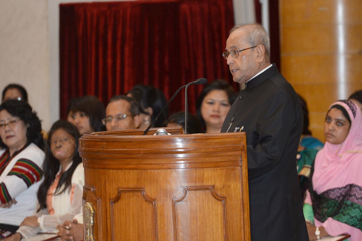 | Caption: | The President of India, Shri Pranab Mukherjee addressing at the presentation of Nari Shakti Puruskars for the year 2016, on the occasion of International Women s Day, at Rashtrapati Bhavan on March 08, 2017. |
