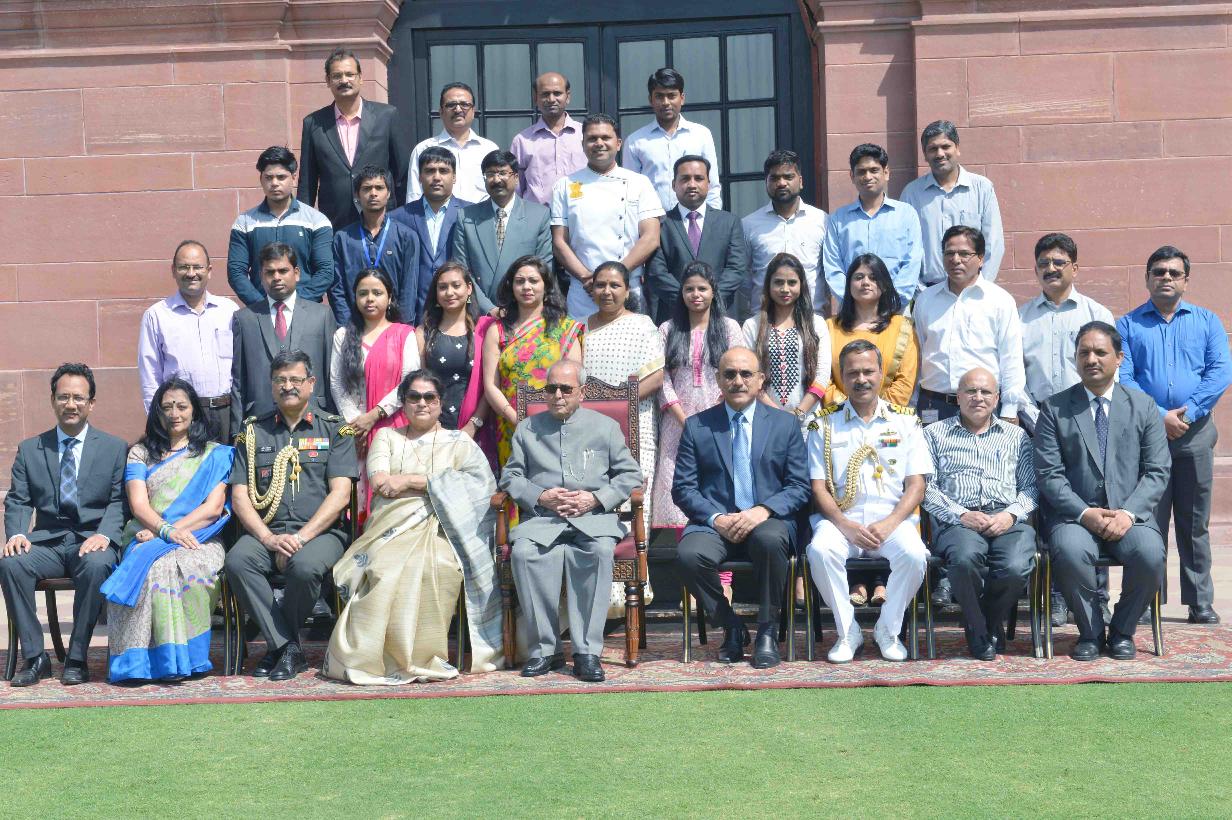 | Caption: | The President of India, Shri Pranab Mukherjee in a Group Photograph with the Officials and Staff for the Festival of Innovation-2017, at Rashtrapati Bhavan on March 27, 2017. |