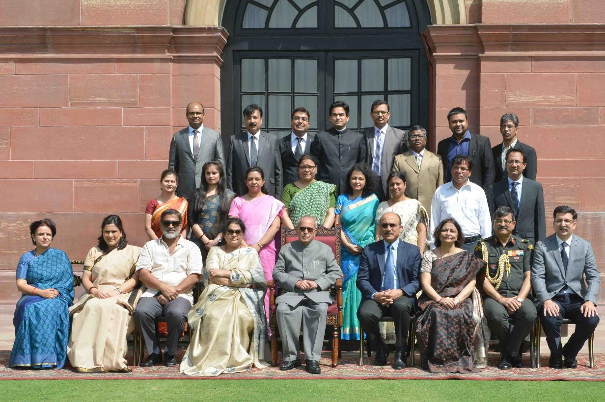 | Caption: | The President of India, Shri Pranab Mukherjee in a Group Photograph with the Officials and Staff of Rashtrapati Bhavan and Publication Division of Ministry of Information & Broadcasting, at Rashtrapati Bhavan on March 27, 2017. |