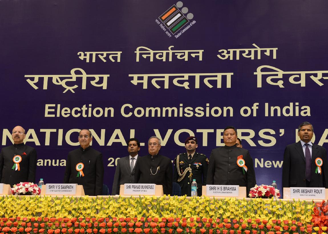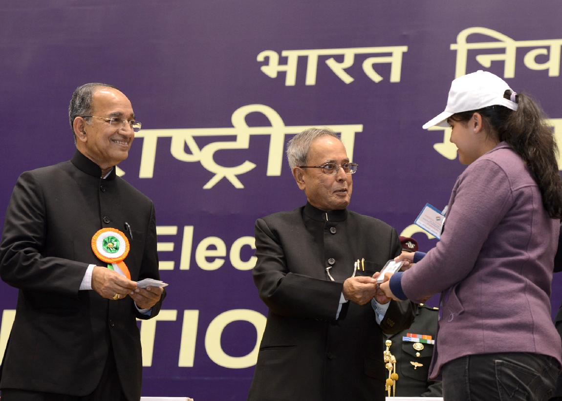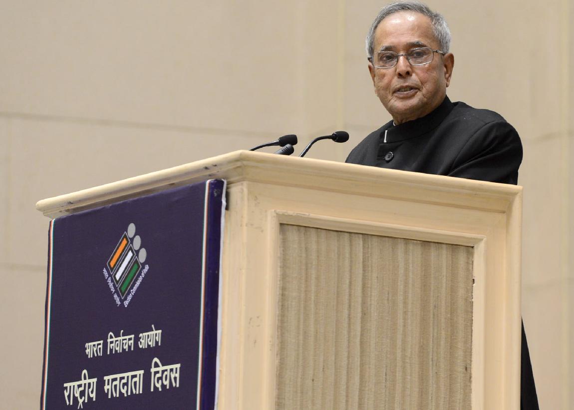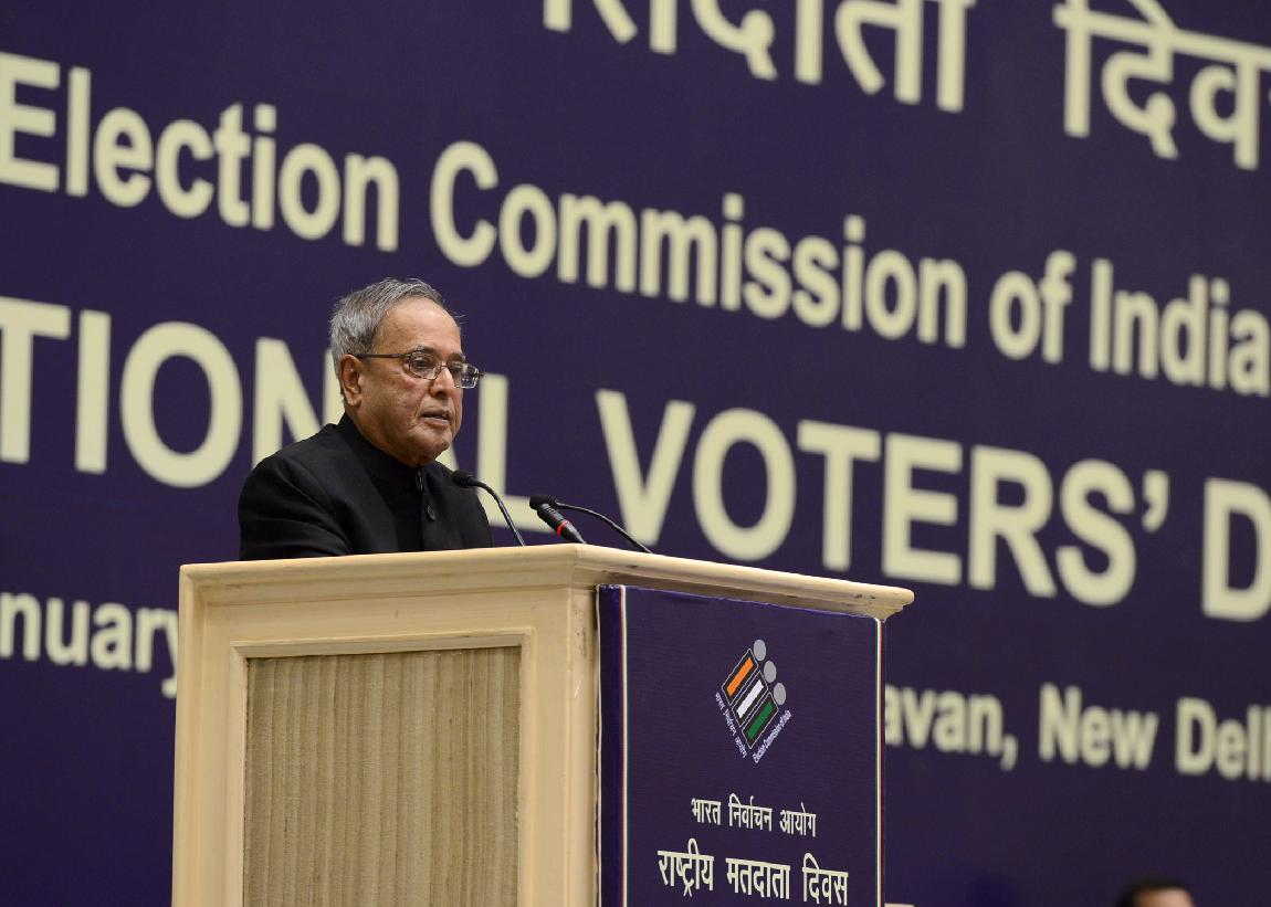 | Caption: | The President of India, Shri Pranab Mukherjee during the National Voters Day Celebrations at Vigyan Bhavan in New Delhi on Jan 25, 2014 |