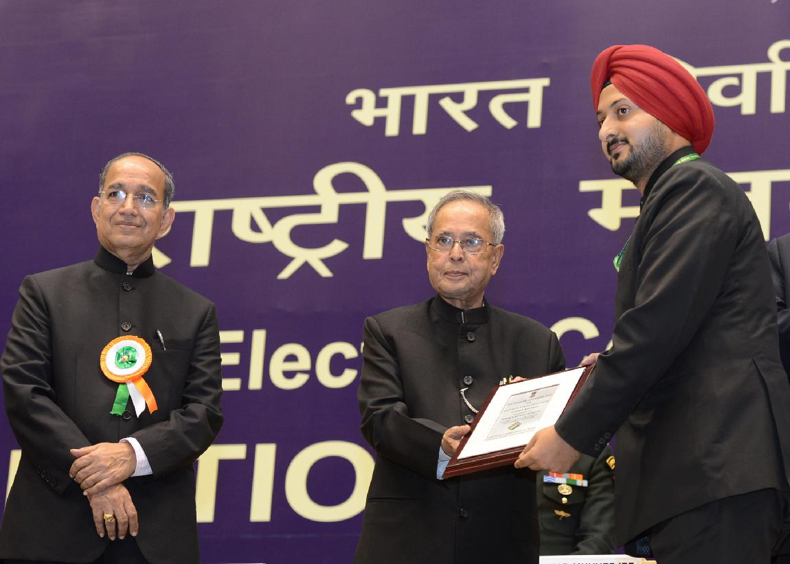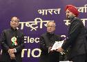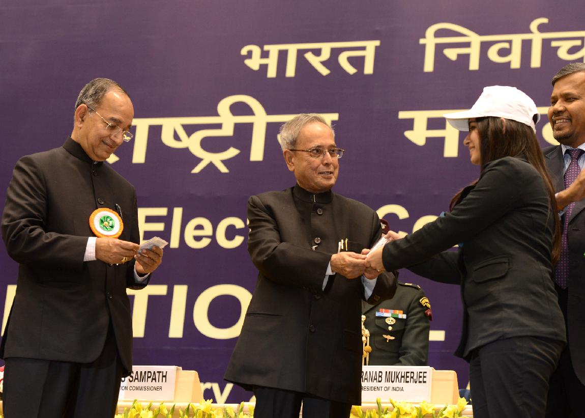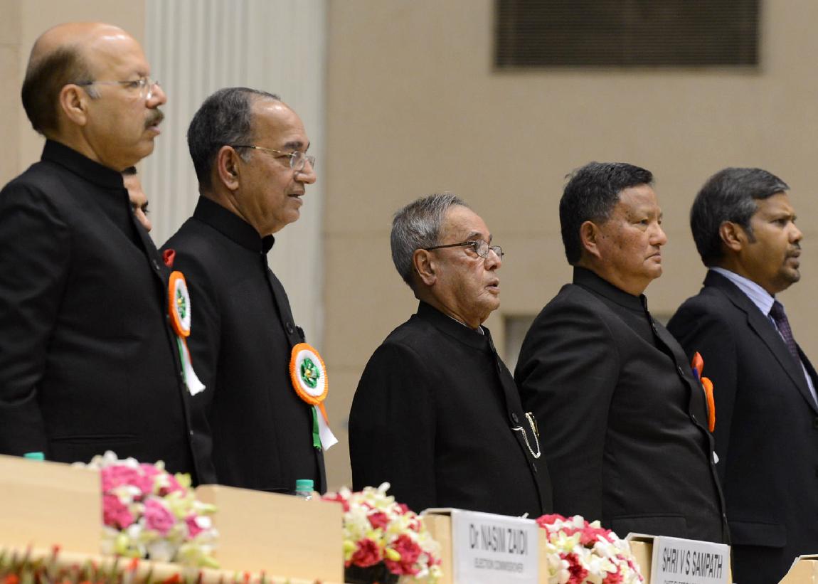 | Caption: | The President of India, Shri Pranab Mukherjee during the National Voters Day Celebrations at Vigyan Bhavan in New Delhi on Jan 25, 2014 |