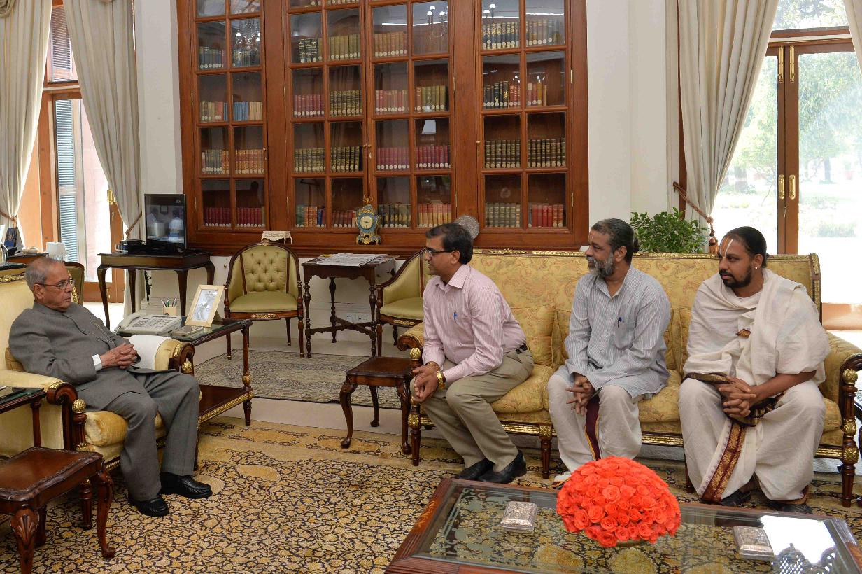 | Caption: | The President of India, Shri Pranab Mukherjee meeting with Dr. P. Srinivas Gopalan, General Secretary, Sri Ramanuja and Syama Sastri Utsav Committee & Sanathana Sampradaya Sangeetha Bharathi with others, at Rashtrapati Bhavan on March 27, 2017. |