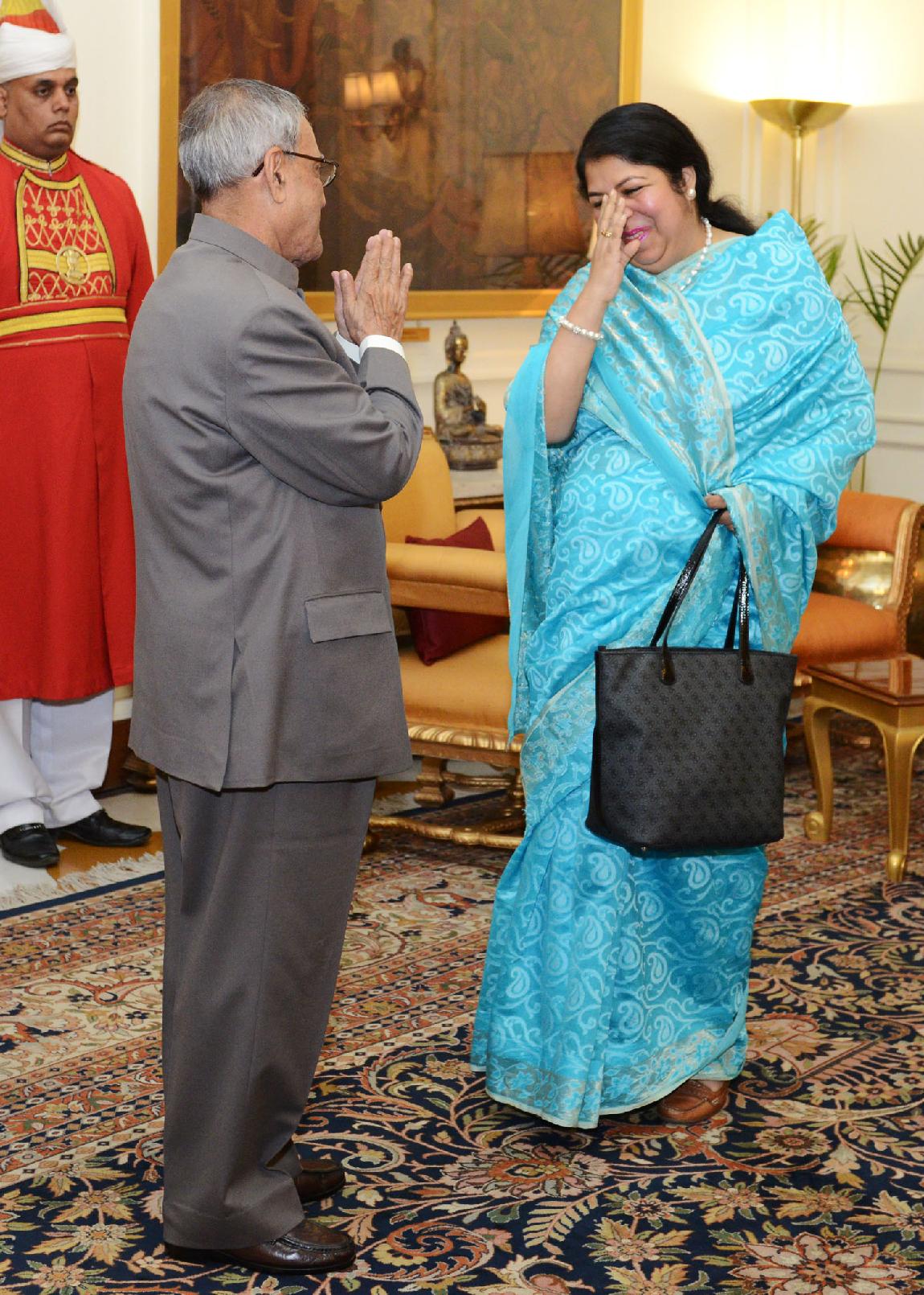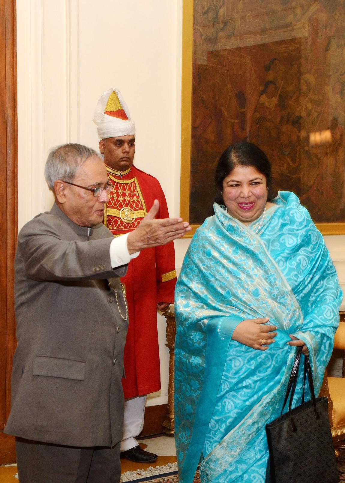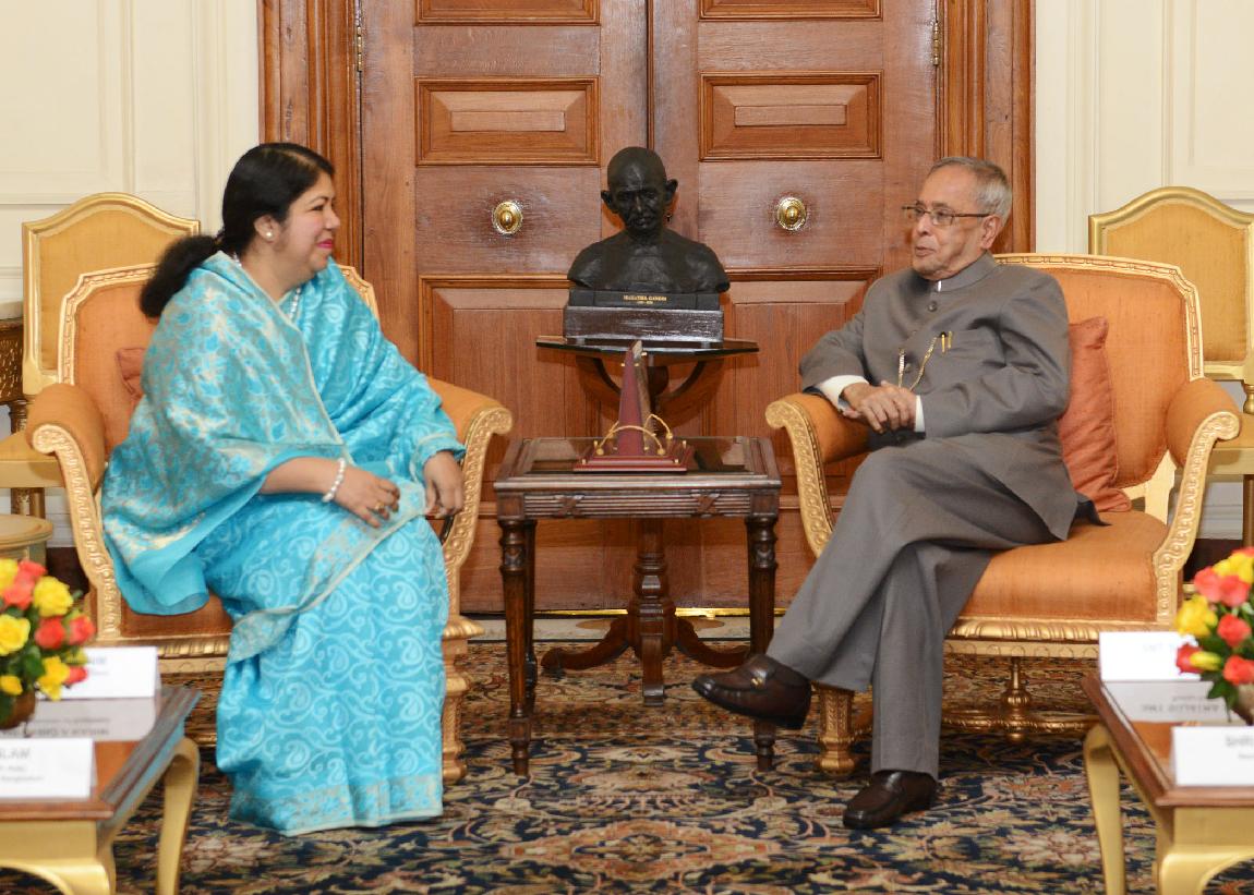 | Caption: | The Speaker of the National Parliament (Jatiya Sangsad) of Bangladesh, HE Dr Shirin Sharmin Chaudhury calling on the President of India, Shri Pranab Mukherjee at Rashtrapati Bhavan in New Delhi on Feb 14, 2014 |