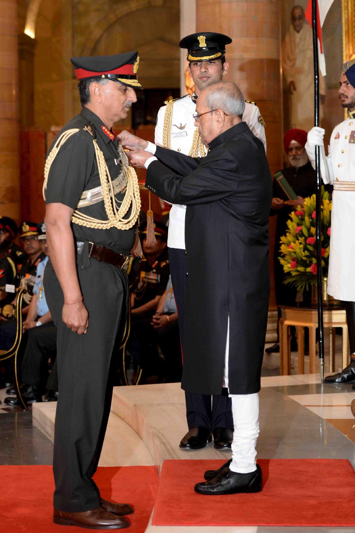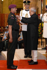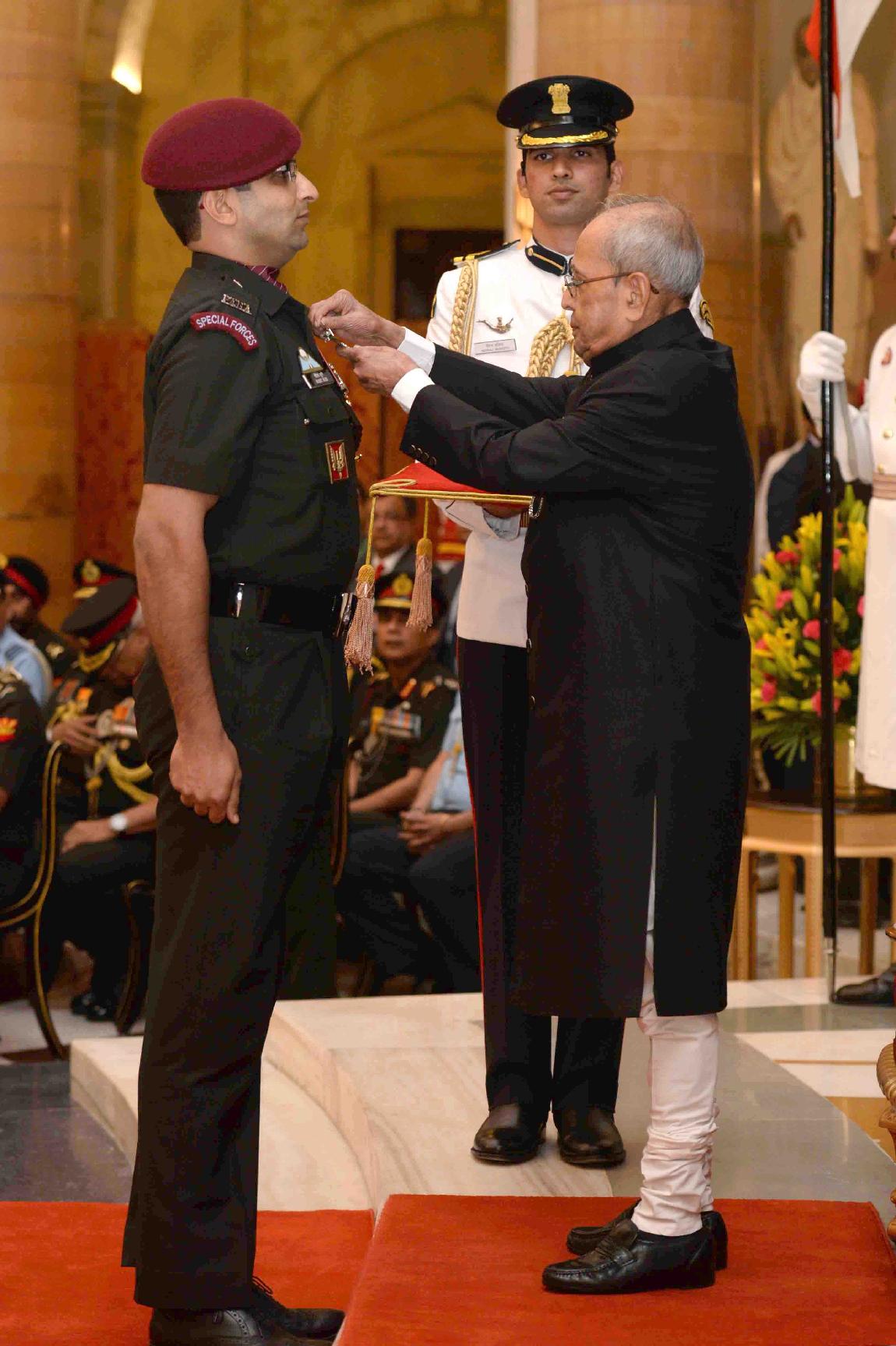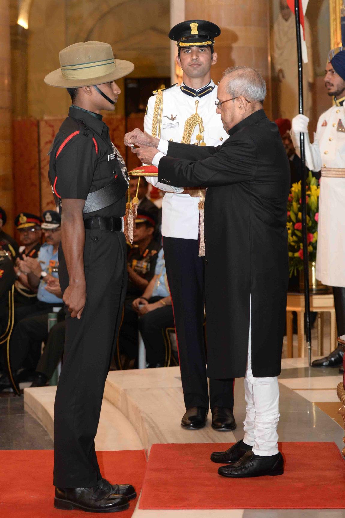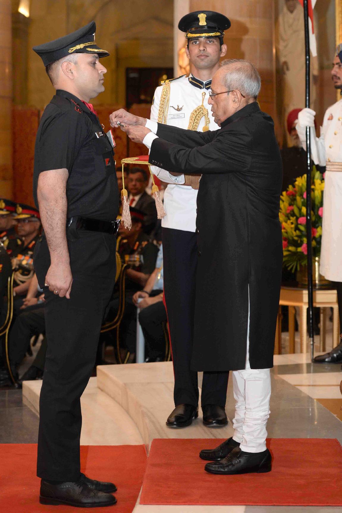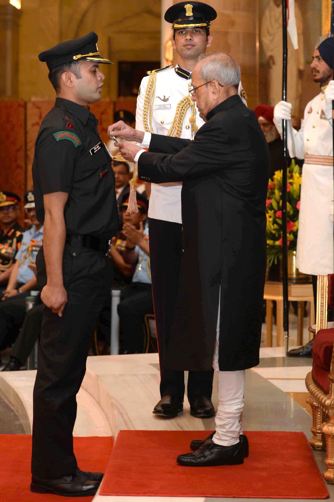 | Caption: | The President of India, Shri Pranab Mukherjee presenting the Gallantry Awards and Distinguished Service Decorations, at a Defence Investiture Ceremony, in Rashtrapati Bhavan on March 20, 2017. |