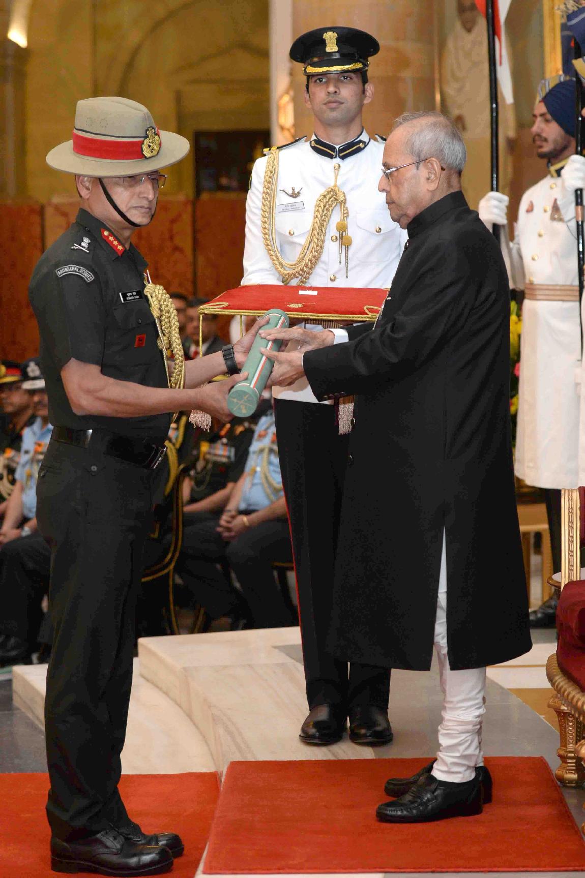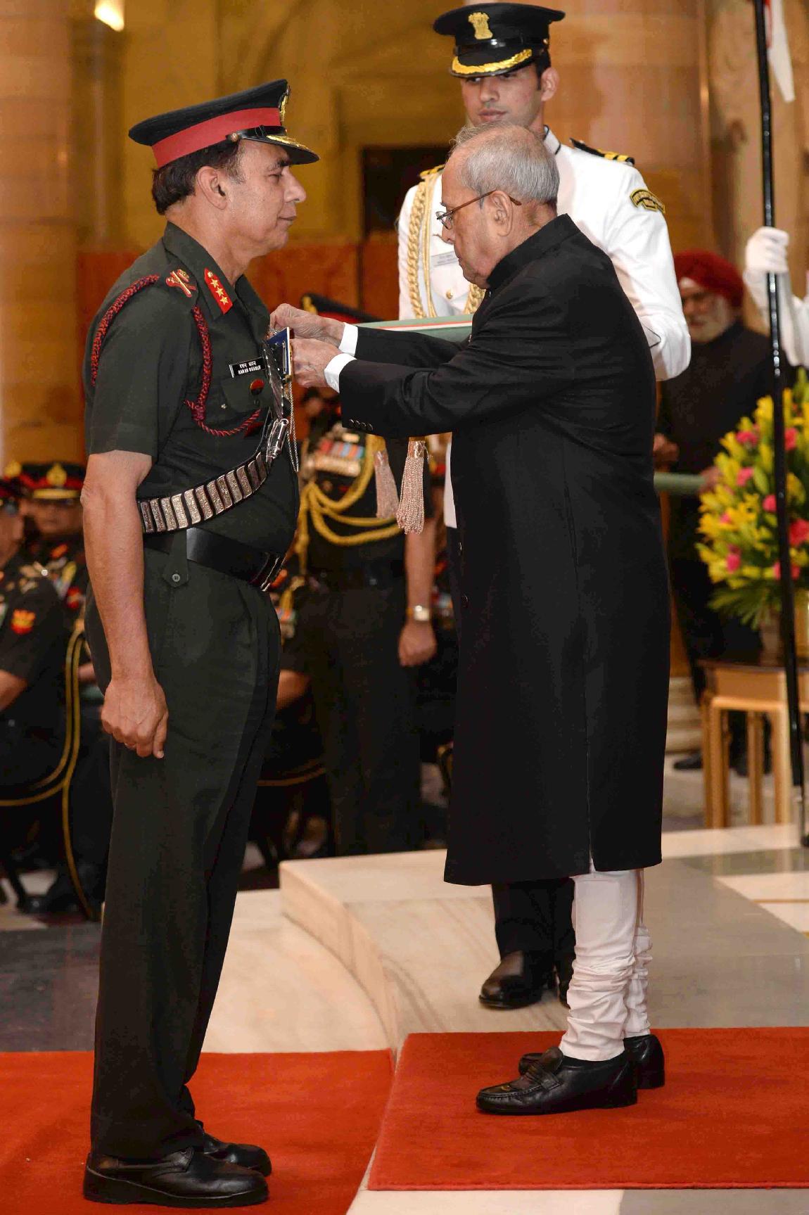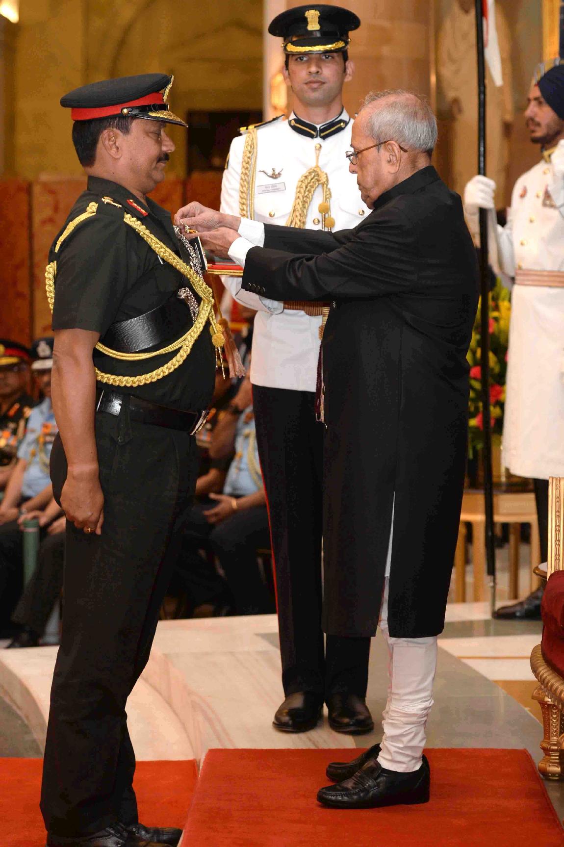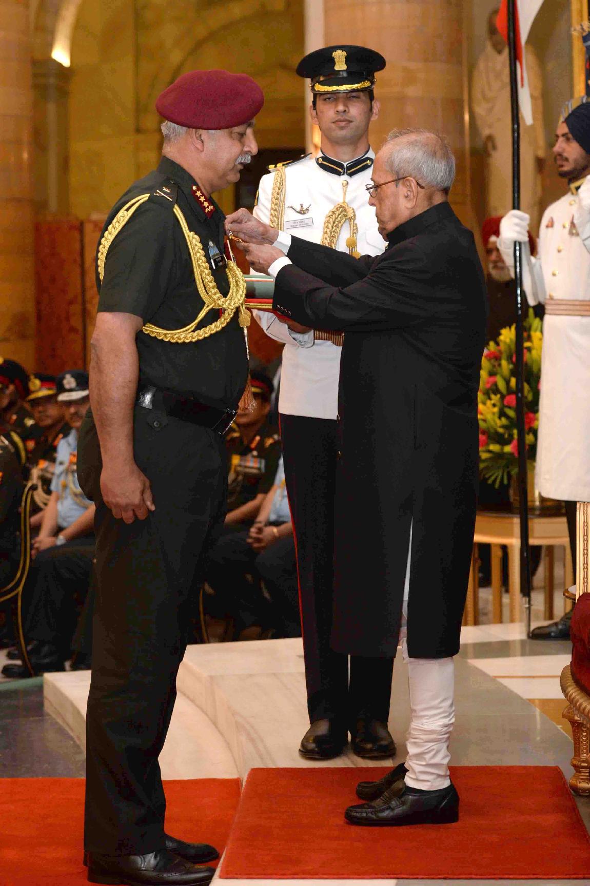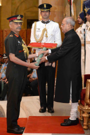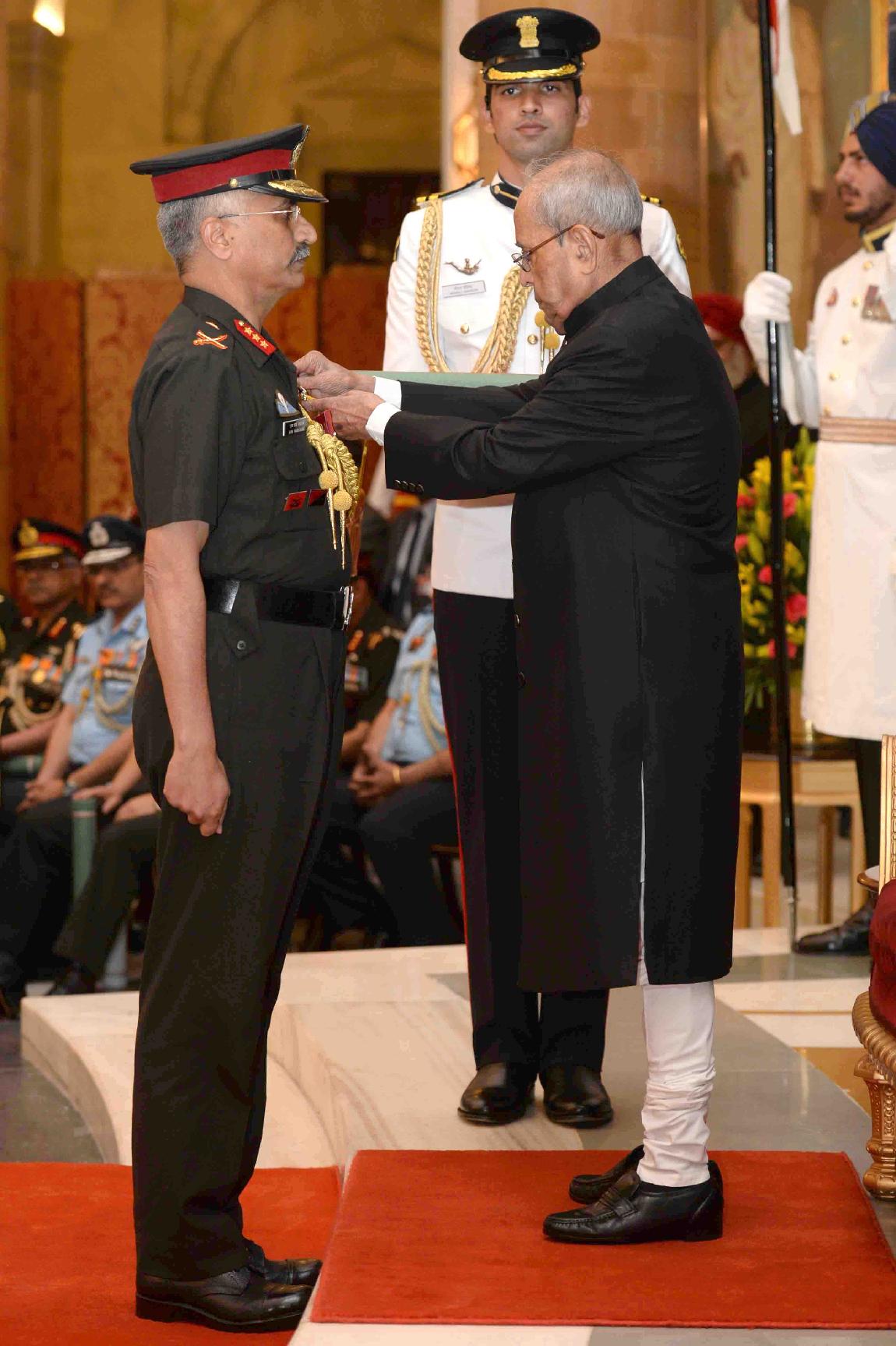 | Caption: | The President of India, Shri Pranab Mukherjee presenting the Gallantry Awards and Distinguished Service Decorations, at a Defence Investiture Ceremony, in Rashtrapati Bhavan on March 20, 2017. |